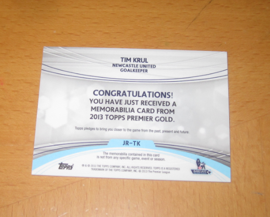 2012-13 Topps Premier TIM KRUL 【hurrylin拍卖】 TOPPS 英超 球星卡 实物卡 球衣卡 纽卡斯尔 荷兰 克鲁尔 极微小瑕疵品相如图