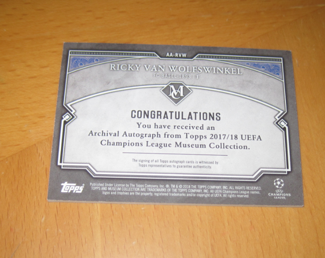 2017-18 Topps 博物馆 Ricky van Wolfswinkel 【hurrylin拍卖】TOPPS 欧冠 签字卡 限量 06/25编 巴塞尔 荷兰 范沃尔夫斯温克尔 极微小瑕疵品相如图