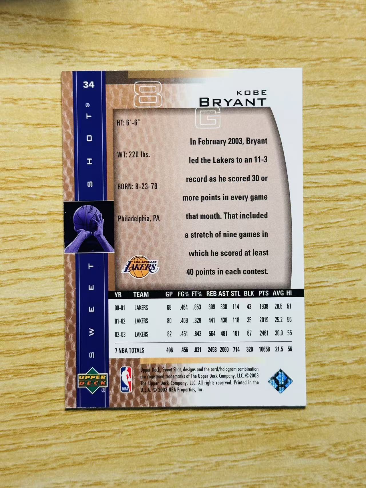 2003 Upper Deck Sweet Shot Kobe Bryant 嘿嘿代卖 UD 科比 布莱恩特 老大 湖人 黑曼巴 老卡 老特 实卡精美 收藏必备