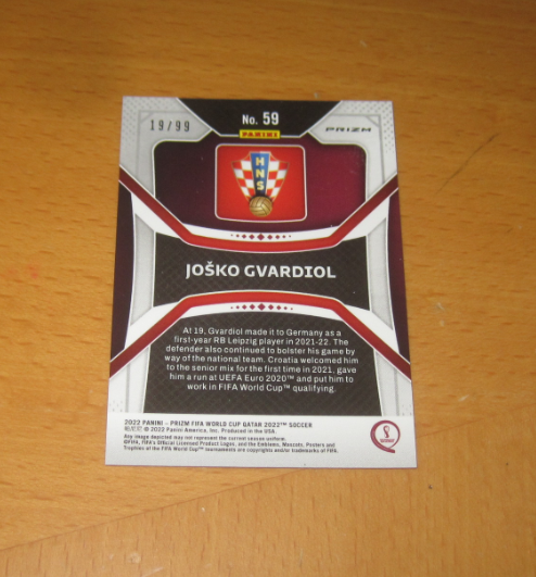 2022 Panini Prizm JOSKO GVARDIOL 【hurrylin拍卖】帕尼尼 世界杯 球星卡 折射 限量 99编 RC 克罗地亚 格瓦迪奥尔 极微小瑕疵 品相如图