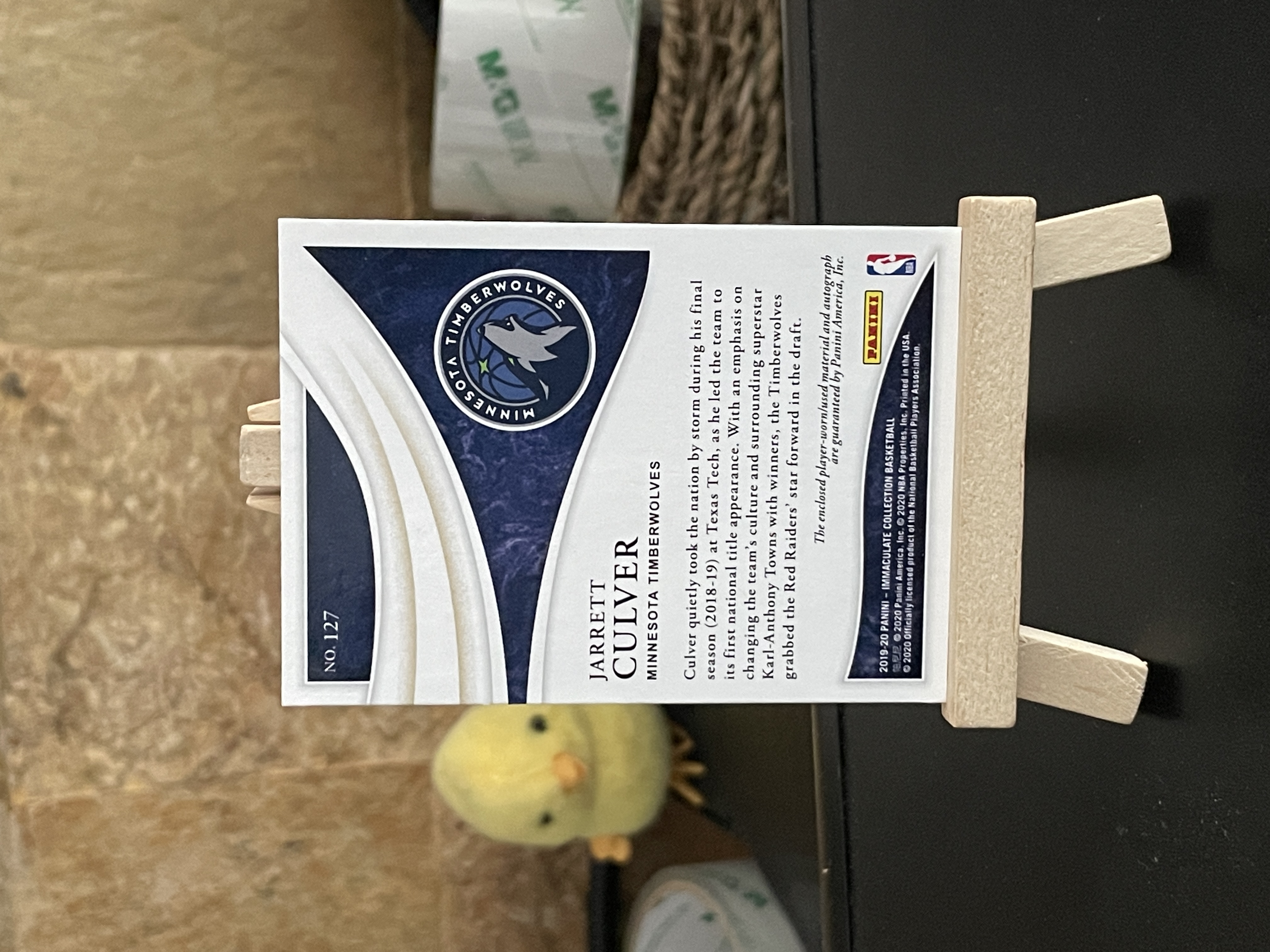 2019-20 Panini Immaculate Jarrett Culver RC 贾勒特 卡尔弗 新秀 IMM 高端 系列 签字 卡签 RPA 球衣暴力切割 patch 三色 物料 99编 森林狼