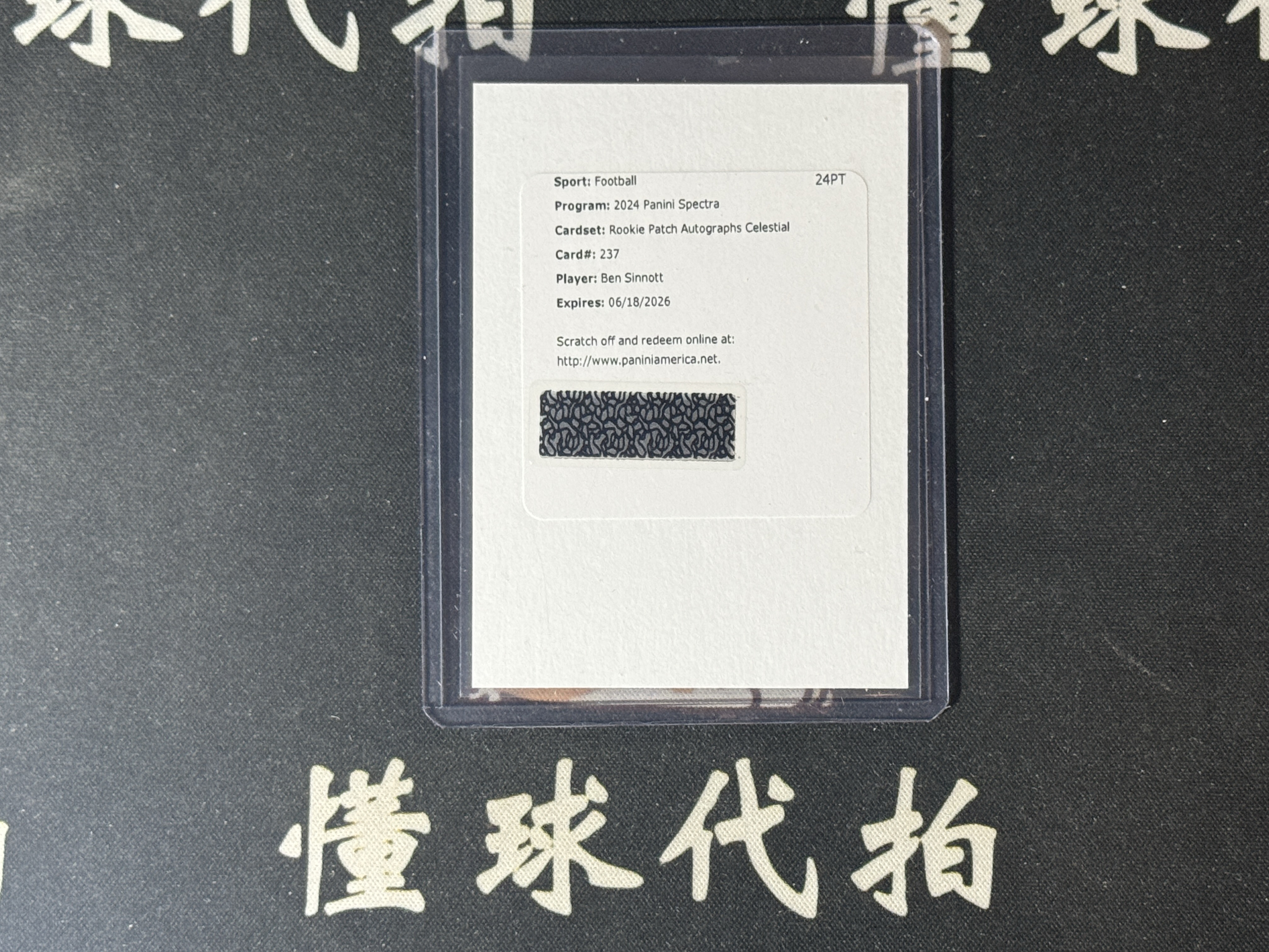 【懂球代拍】2024 panini NFL橄榄球光谱spectra RC新秀 99编 Ben Sinnott斯奈特 辛诺特 指挥官 RPA签字 交换版 值得收藏 DQ081A 008