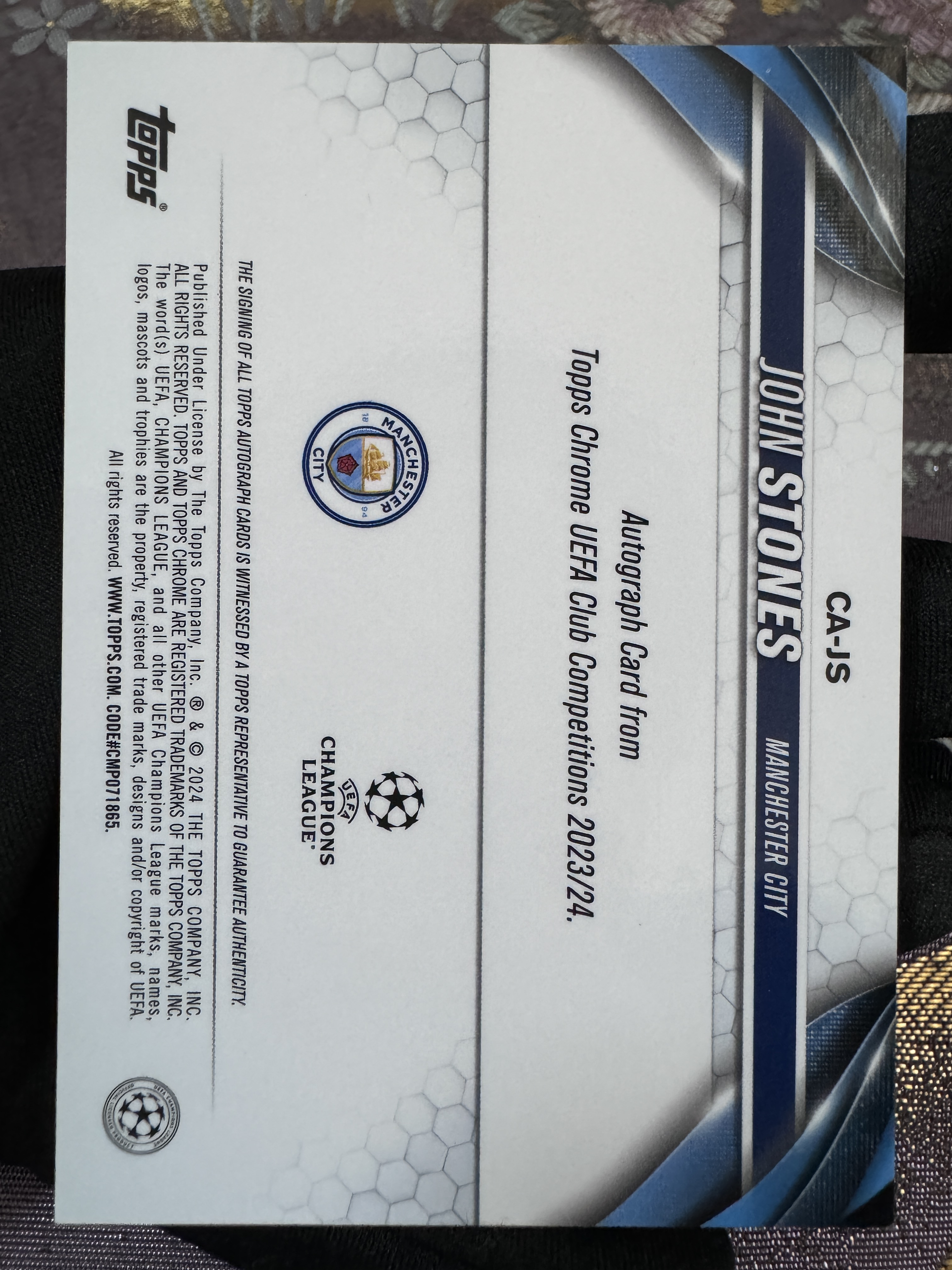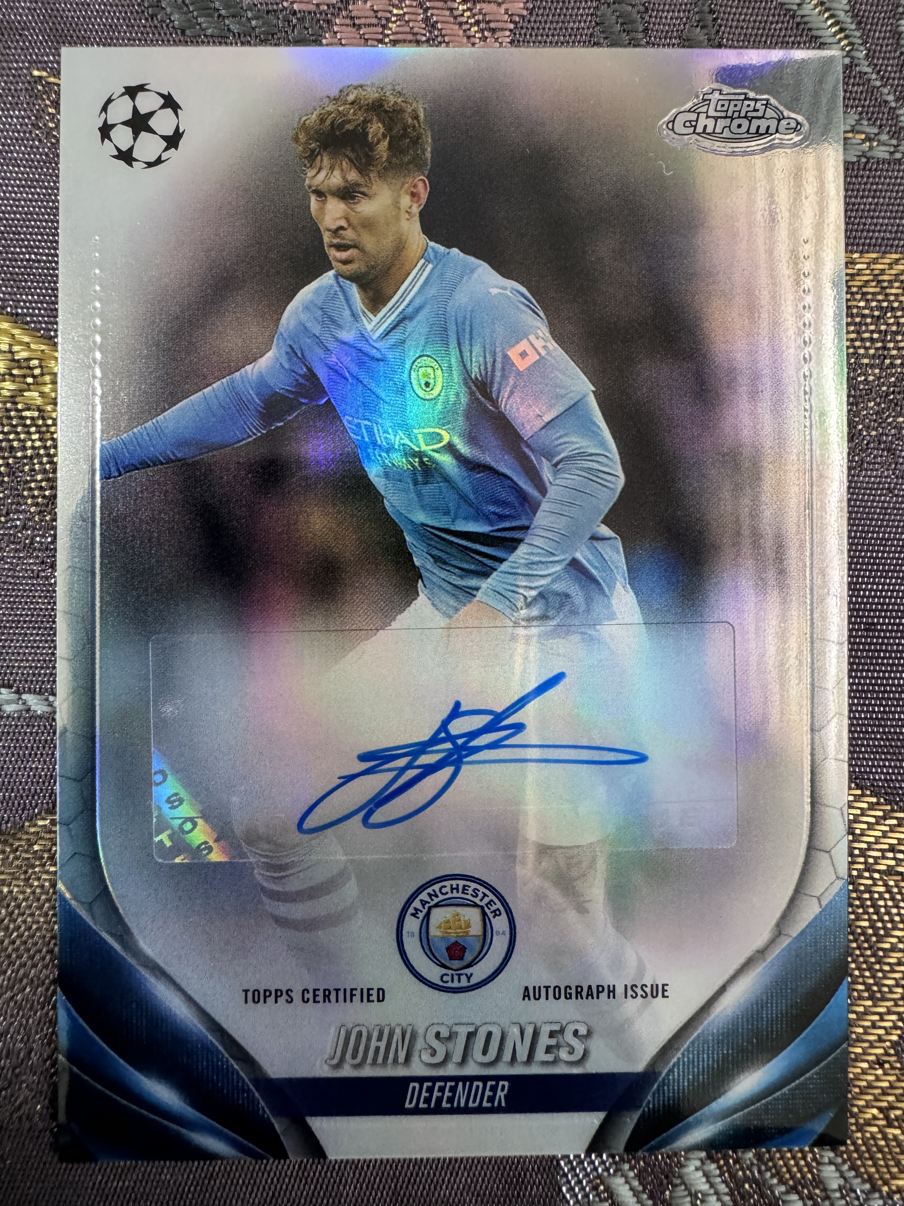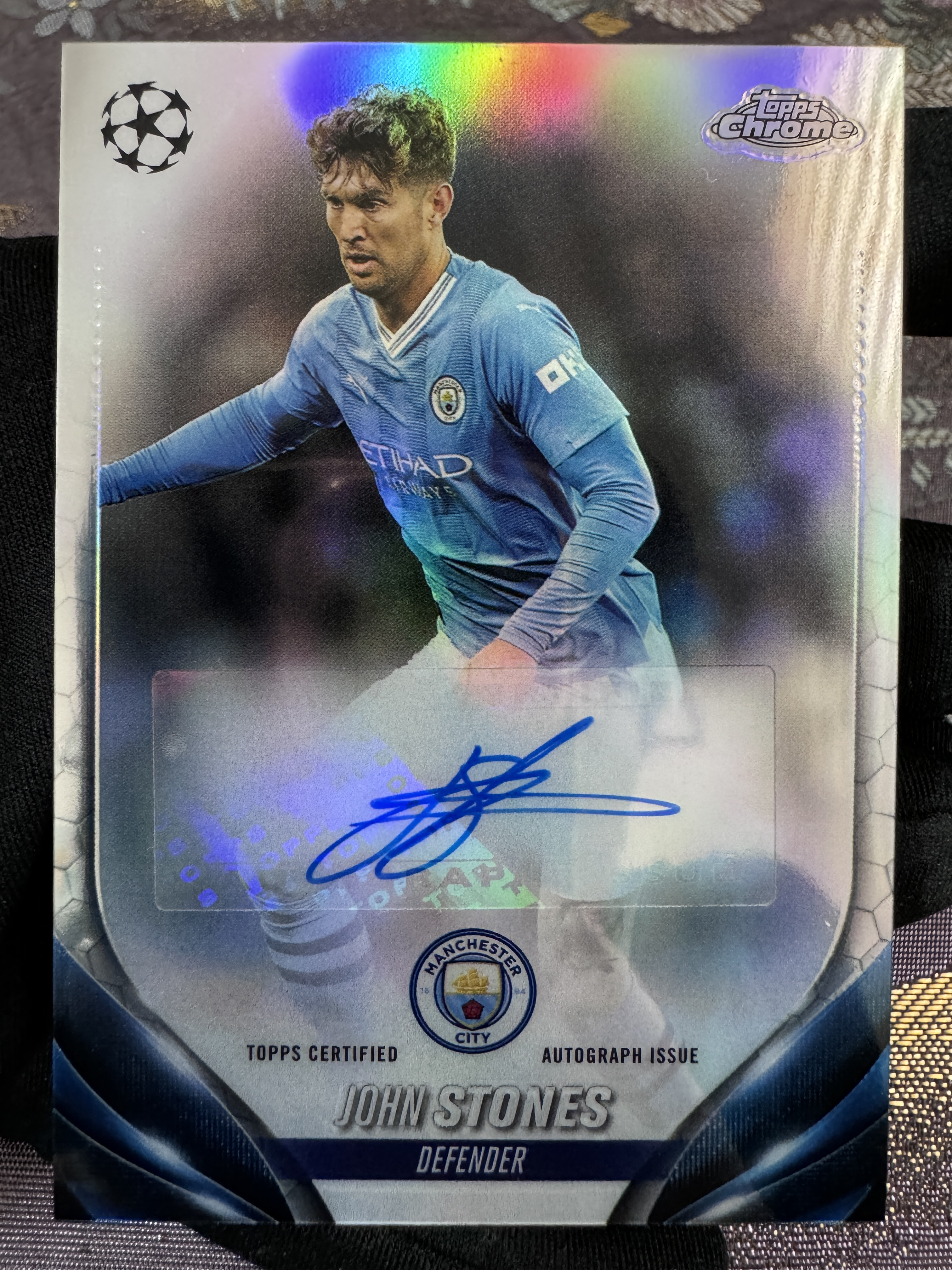 2024 Topps Chrome John Stones 【澈梦北霄球星卡社代拍】欧冠 chrome 曼城 三冠王 核心 英格兰 超级巨星 铁卫 约翰 斯通斯 银折签 签字 完美墨迹 实卡精美