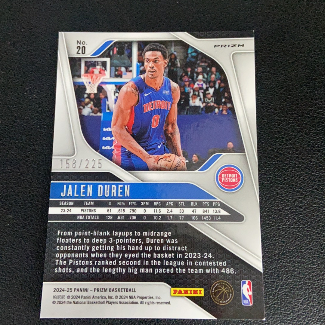 2024-25 Panini Prizm Jalen Duren 活塞 杰伦 杜伦 /225编 青碎冰折 PZ系列 带编 折射 卡品如图