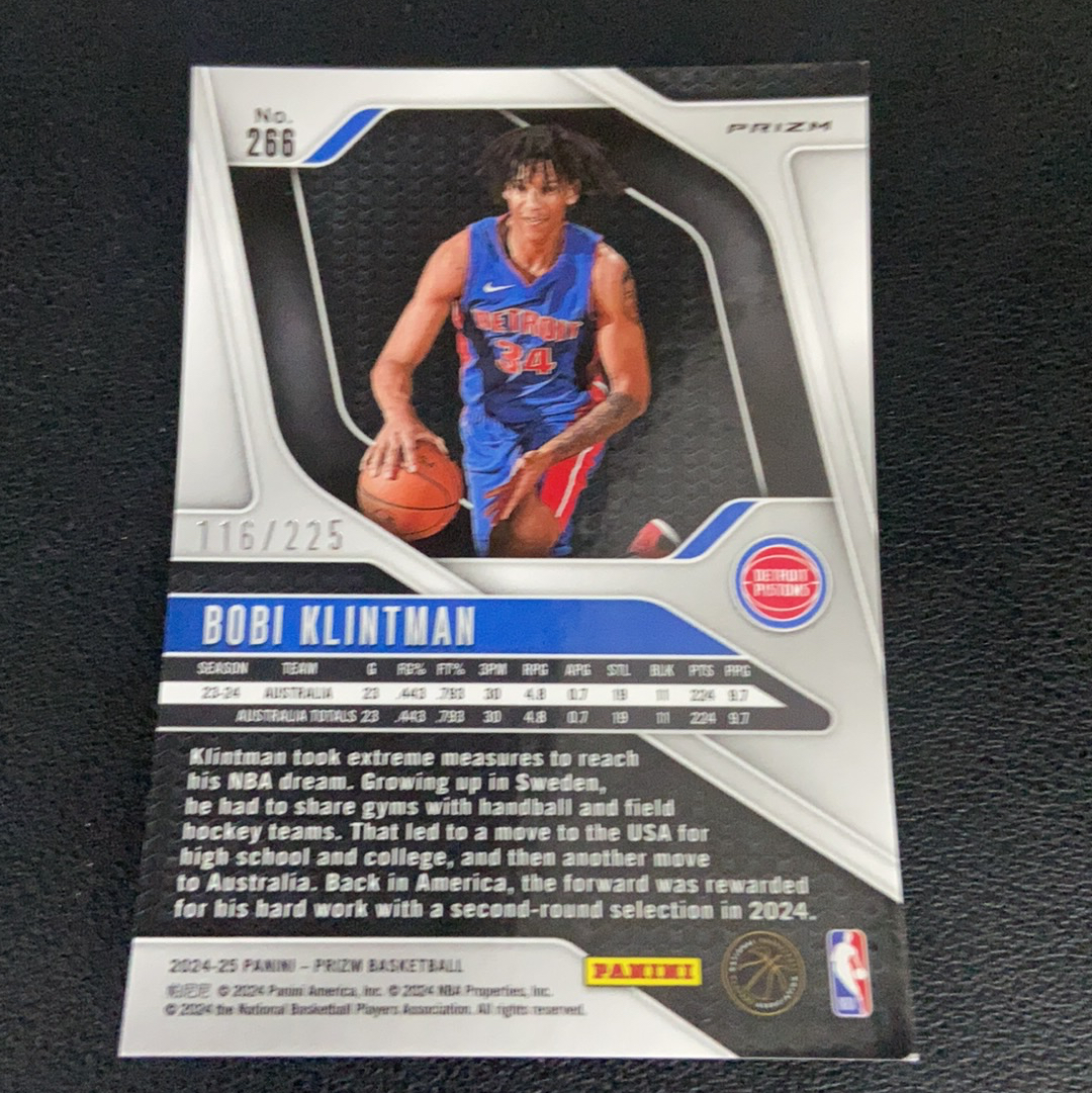2024-25 Panini Prizm Bobi Klintman pz 博比 克林特曼 活塞 新秀 RC 青碎冰折225/225编 尾编!卡品如图