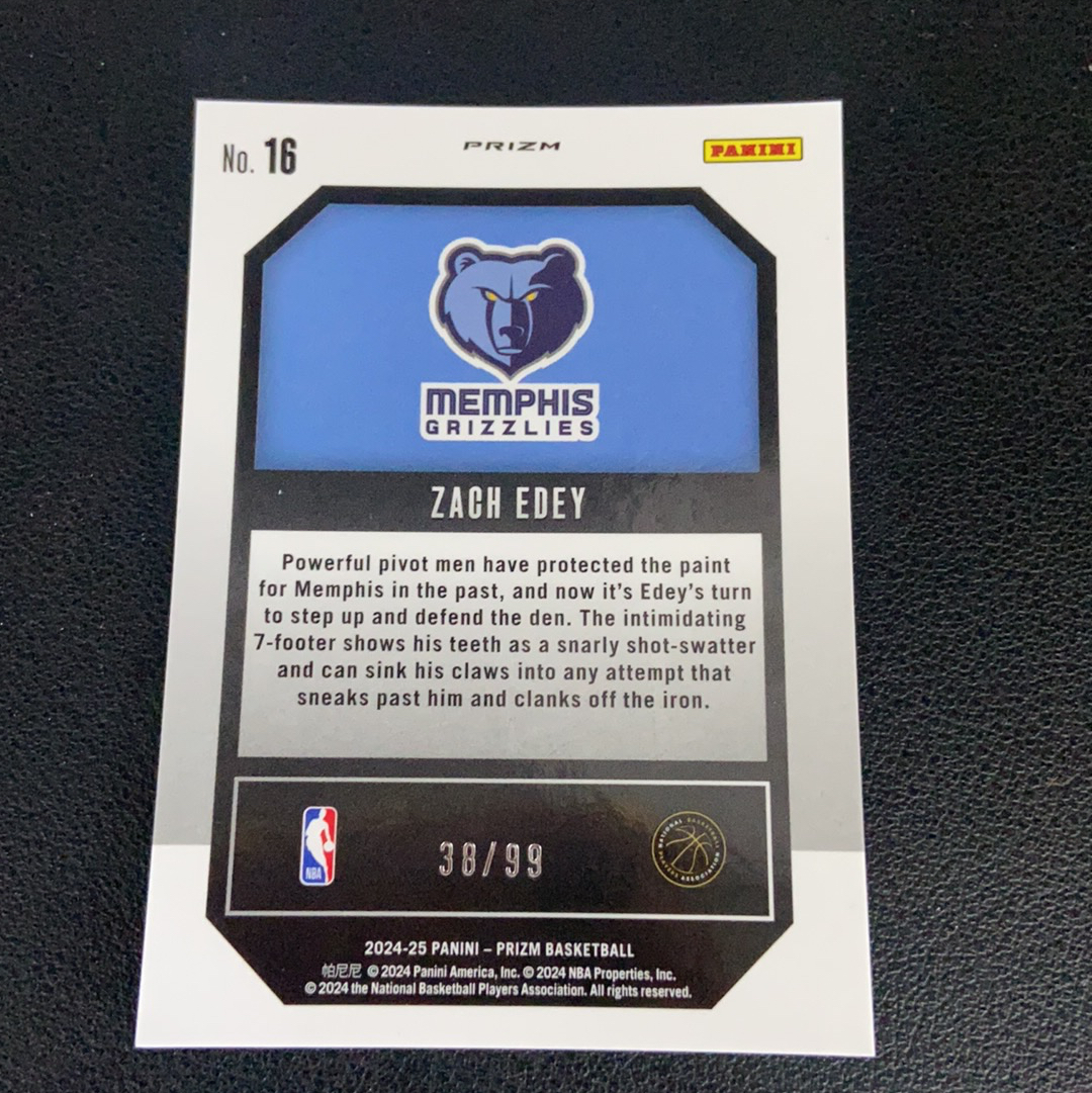 2024-25 Panini Prizm Zach Edey RC 灰熊 扎克 伊迪 周志豪 rc 新秀 蓝脉冲折 能量特卡 折射 99编 卡品如图 专收必备