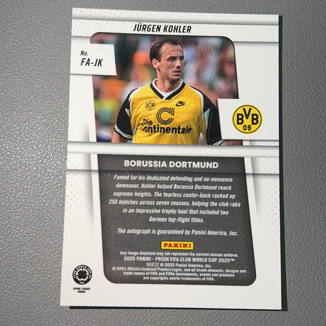 2025 Panini Prizm Jurgen Kohler Fifa Club world cup 世俱杯 pz 于尔根 科勒 签字 完美墨迹 传奇 多特蒙德 卡品如图 收藏必备