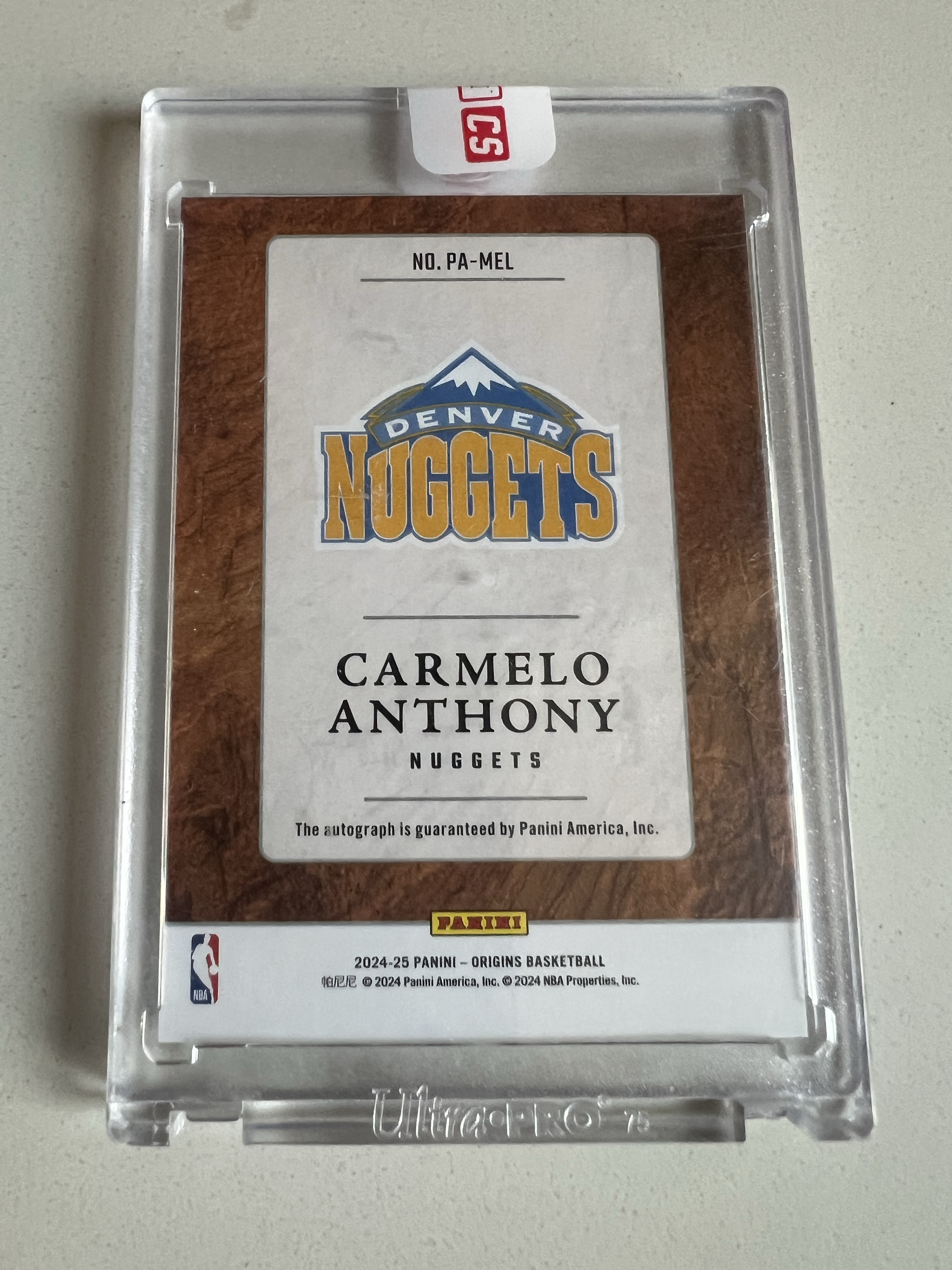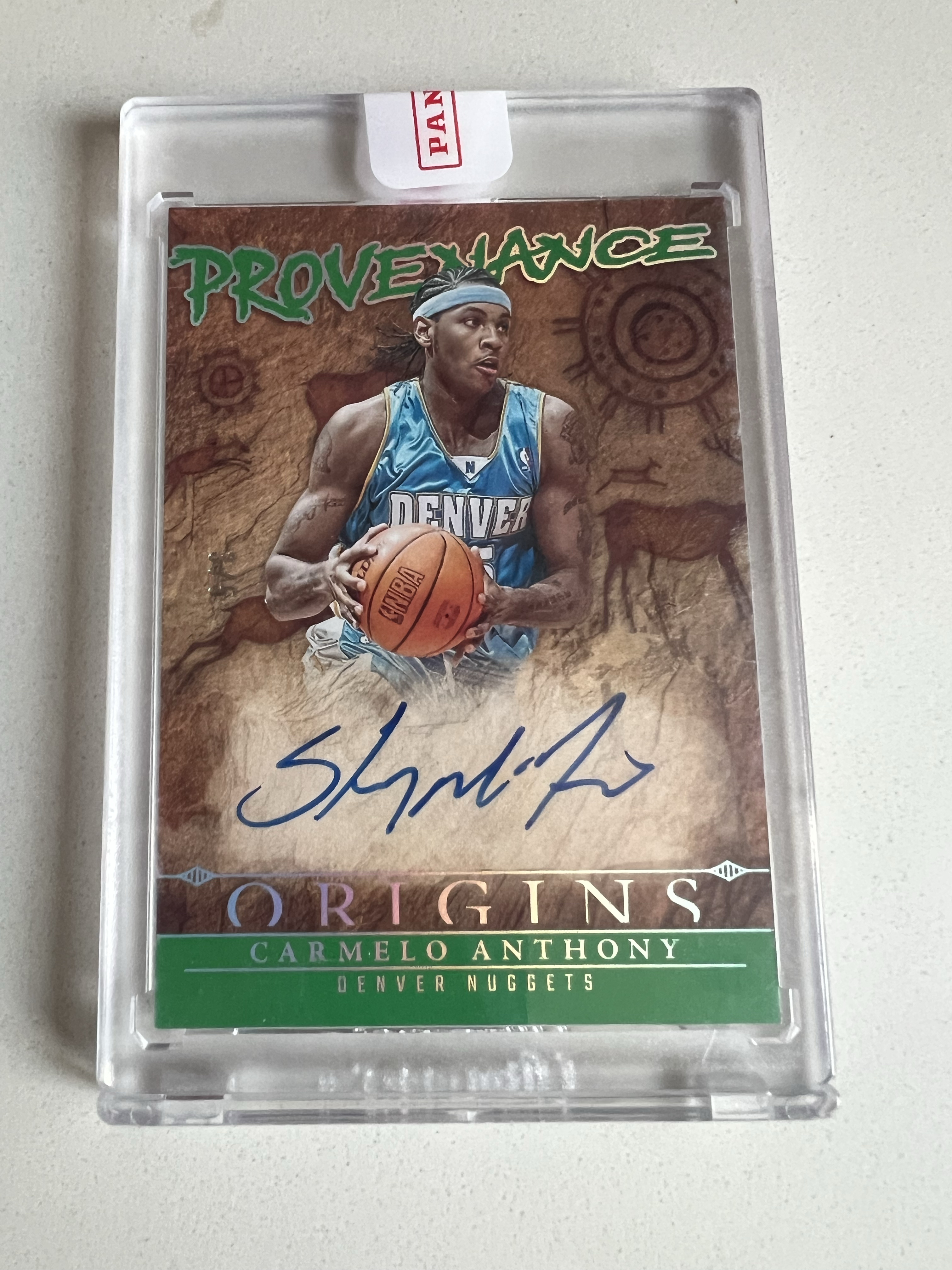 2024-25 Panini Origins Carmelo Anthony 甜瓜 卡梅隆 安东尼 签字 卡签 起源 詹姆斯科比队友原封砖 掘金新秀赛季选图, 3/5宝石绿超低编,墨迹好,交换原封砖