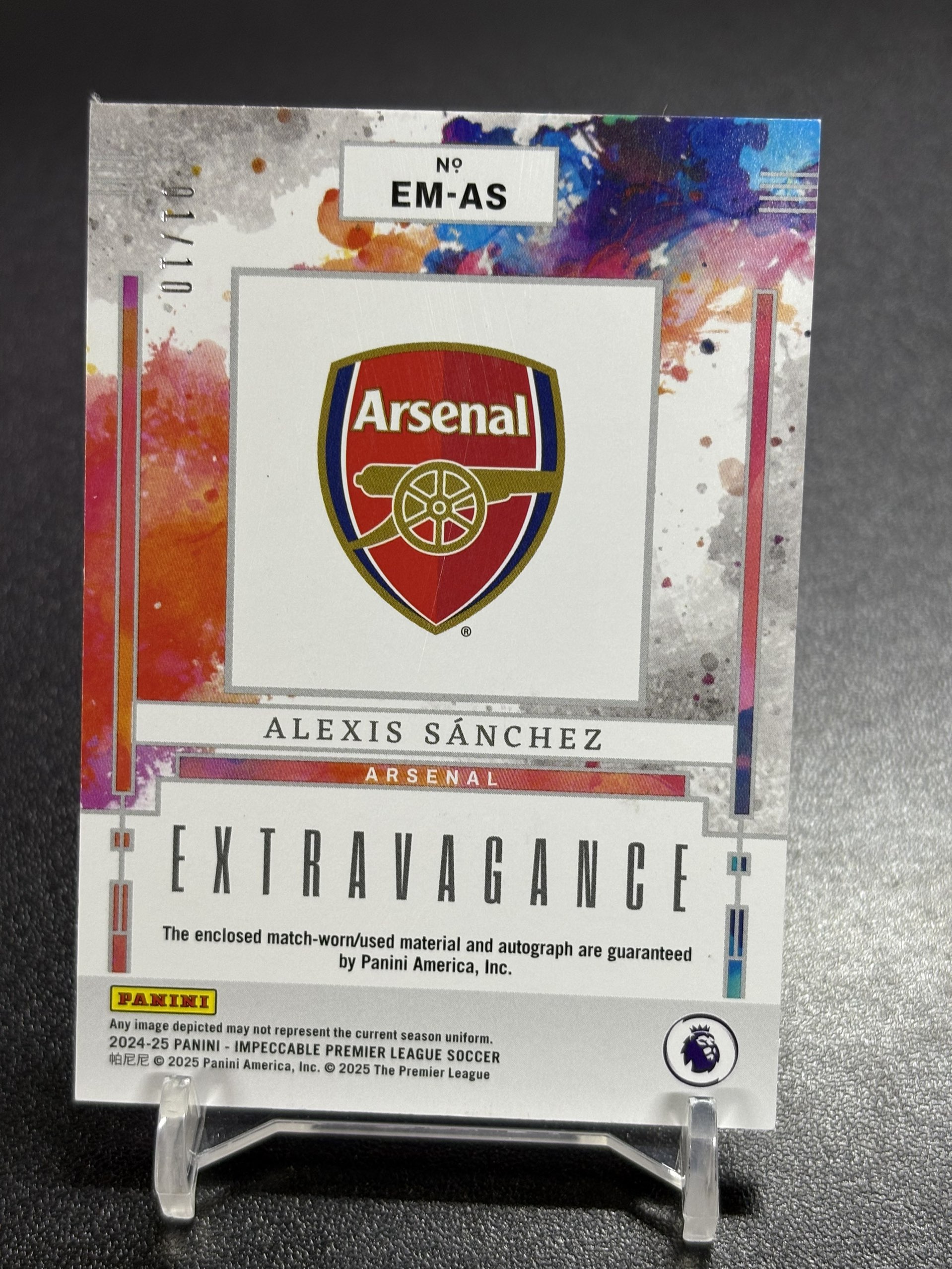 【浩行拍卖】2024-25 panini impeccable alexis sanchez 小真金 英超 阿森纳 阿莱克西斯 桑切斯 金闪版 签字 奢华签 球衣 物料 patch 1/10编 首编 低编 瑕疵看图「雾凌」1122S04鍾