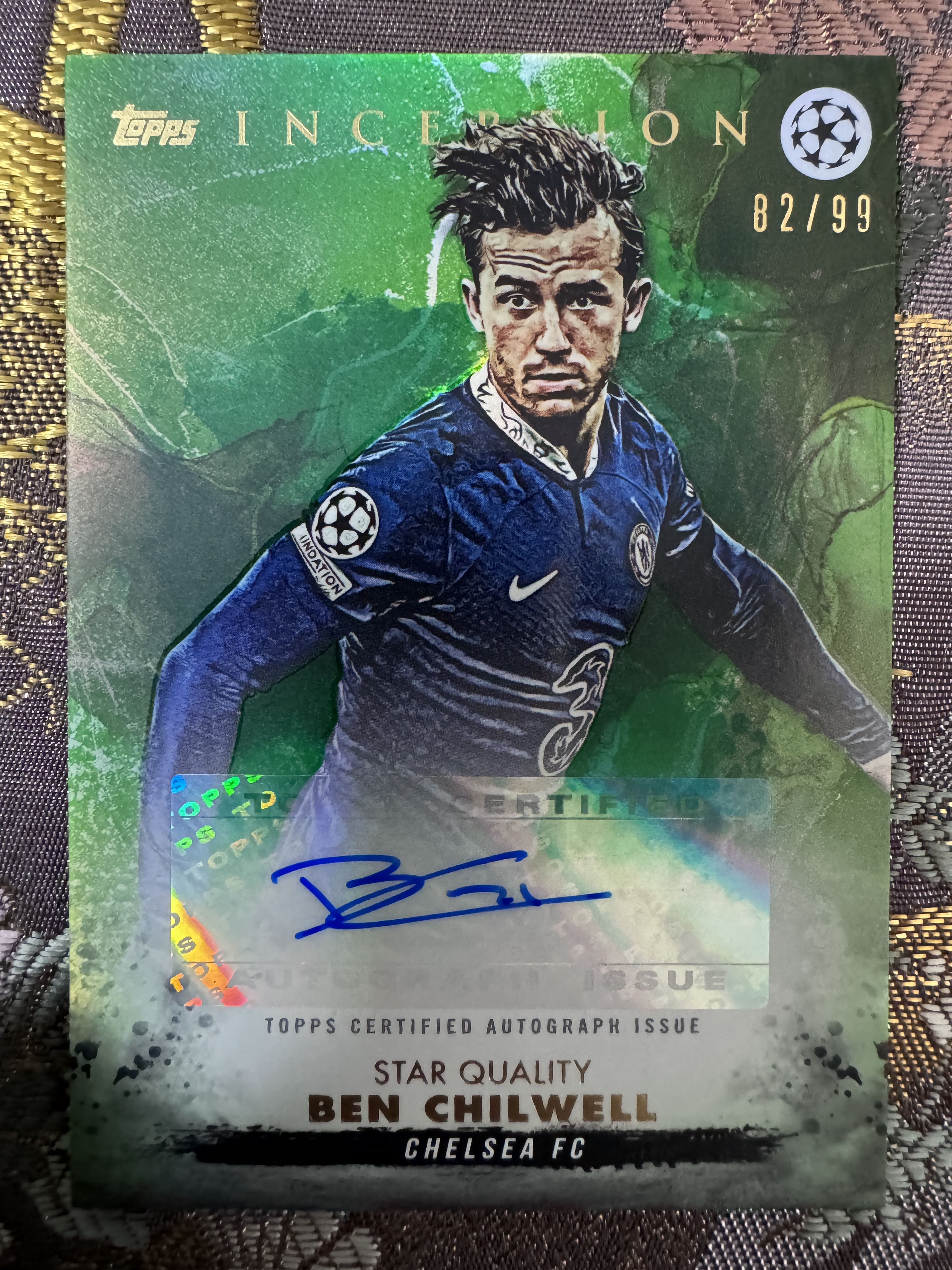 2023 Topps Inception Ben Chilwell 【澈梦北霄卡社代拍】欧冠 盗梦空间 切尔西 边路快马 车子拦截器 奇尔维尔 绿油画 泼墨签 82/99编 签字 完美墨迹 实卡精美