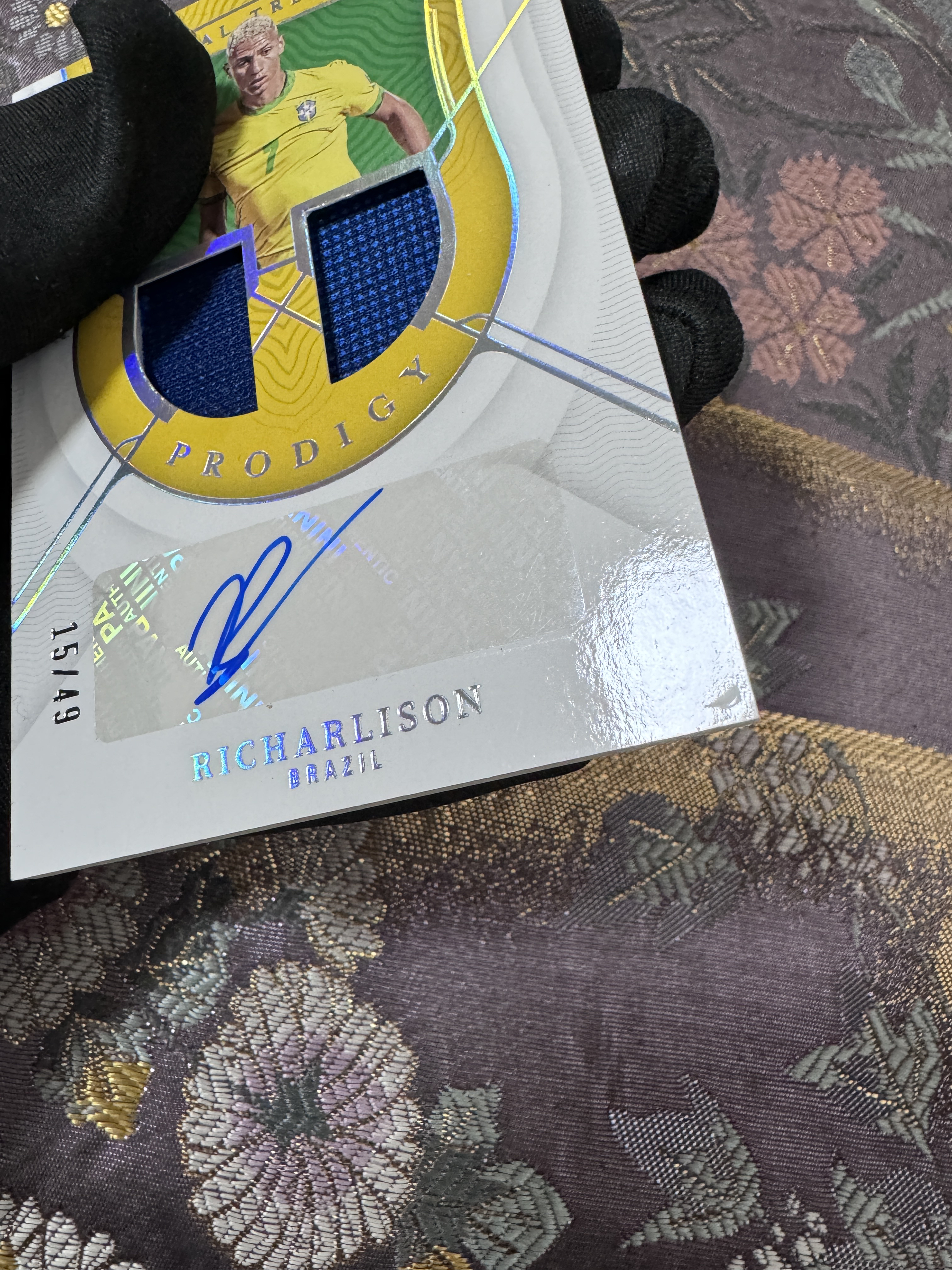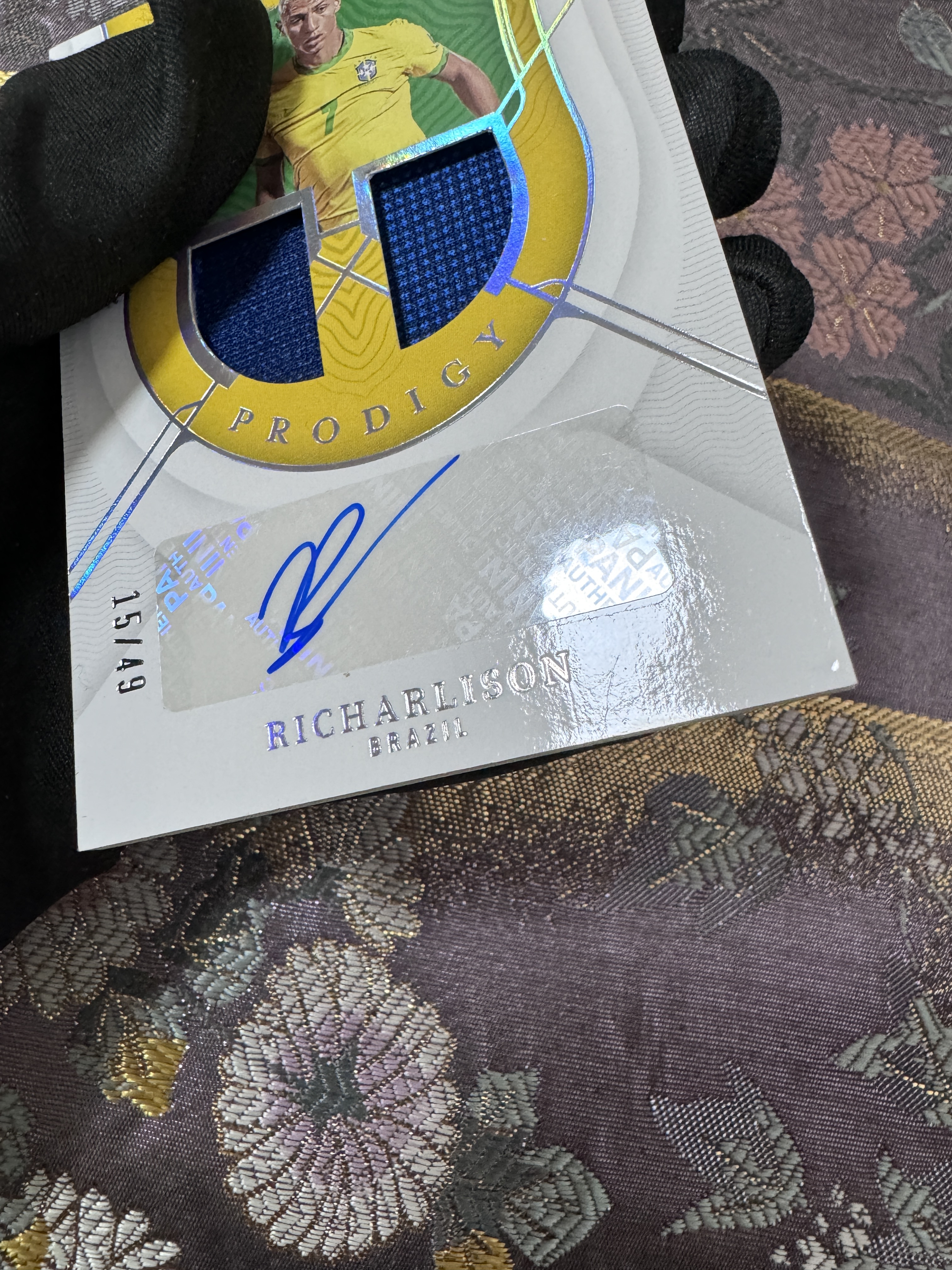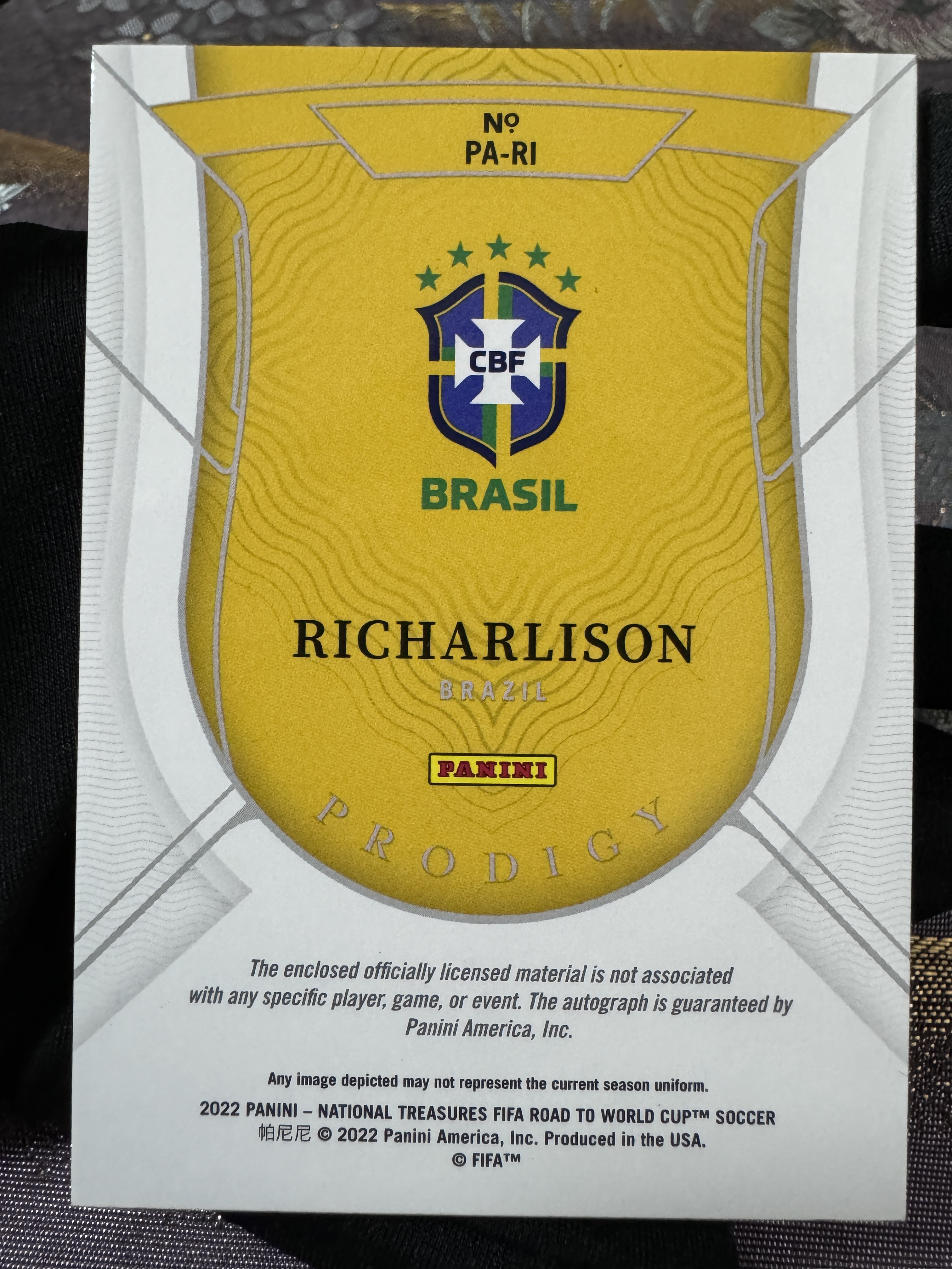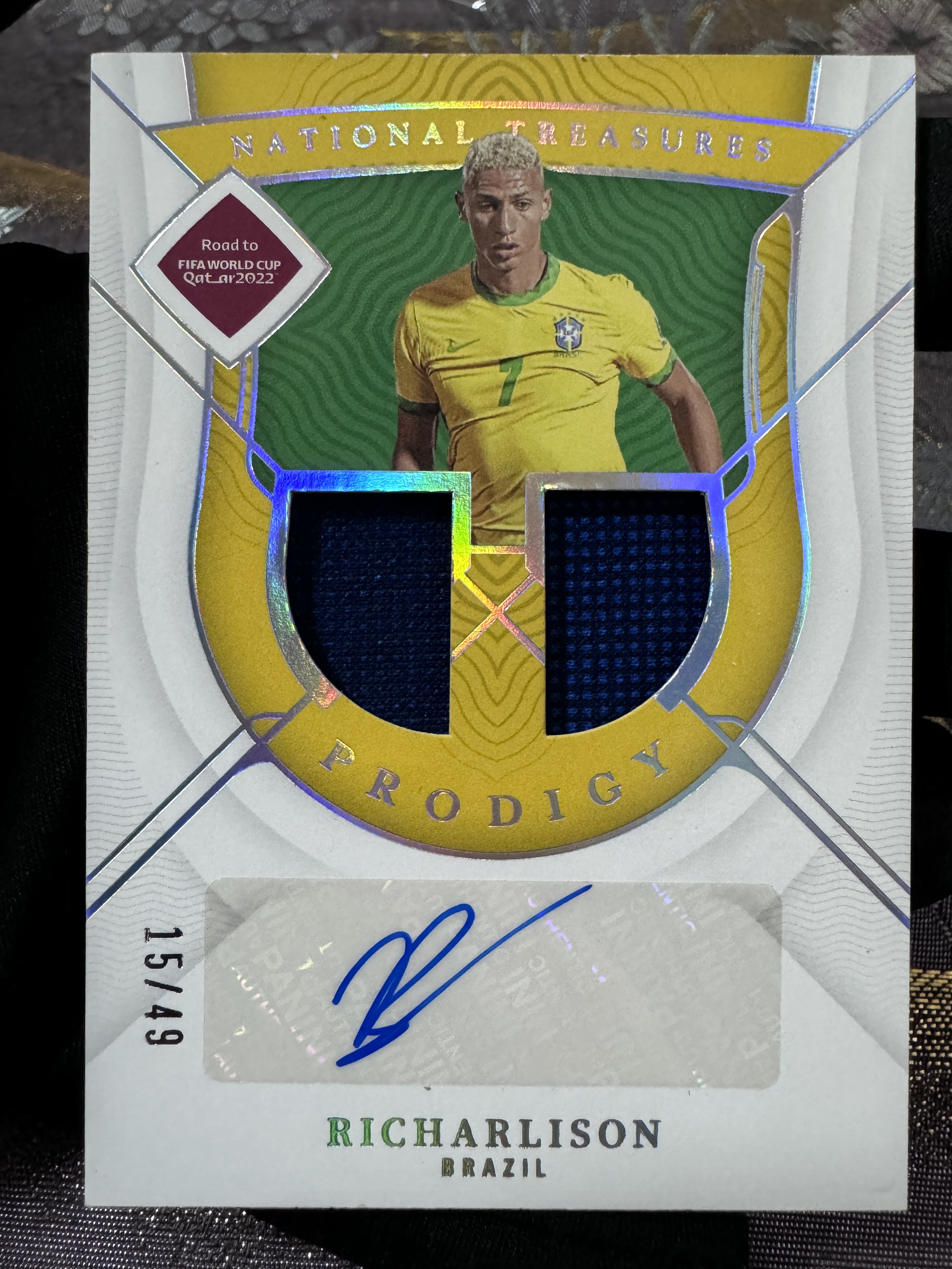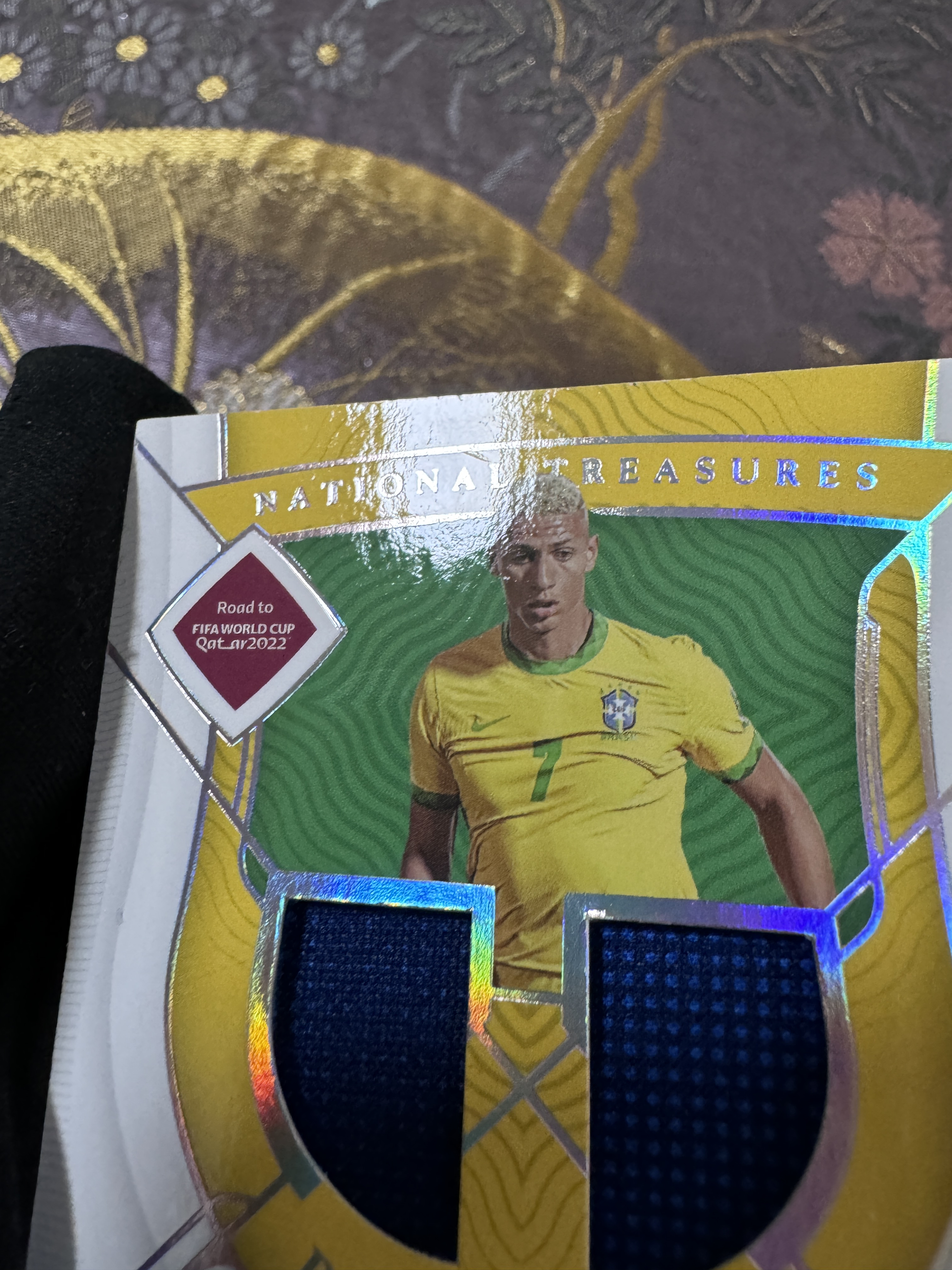2022 Panini National Treasures Richarlison 世界杯 国宝 巴西 顶级射手 里沙利松 理查利森 双窗物料切割 球衣签 15/49编 签字 完美墨迹 实卡精美