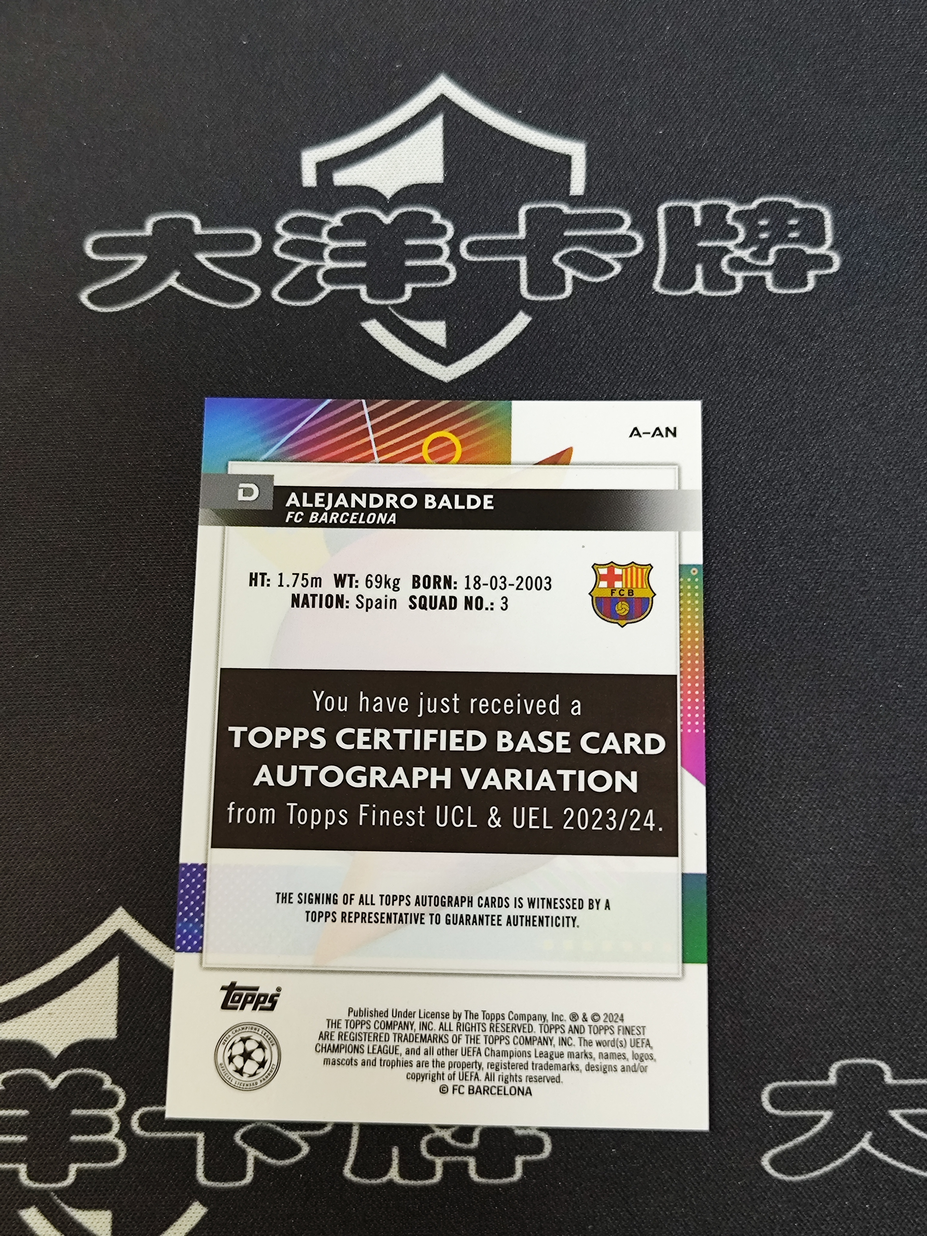 2024 Topps Finest Alejandro Balde 【大洋代卖】足球 亚历杭德罗巴尔德 签字 折射 西班牙 西甲 巴塞罗那 欧冠 世界杯 不累计 实体店免费代卖 海南