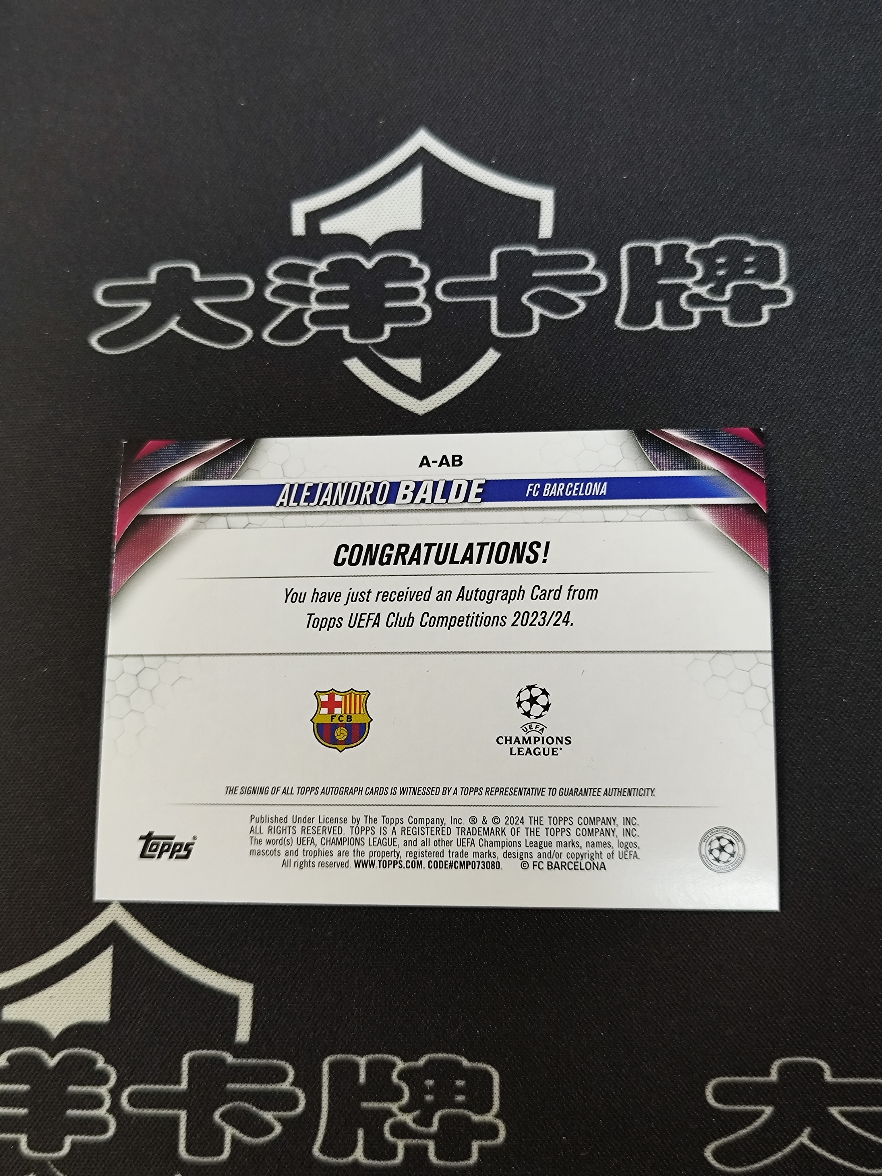 2024 Topps UEFA Champions League Alejandro Balde 【大洋代卖】足球 亚历杭德罗巴尔德 签字 西班牙 西甲巴塞罗那 欧冠 世界杯 不累计实体店免费代卖 海南