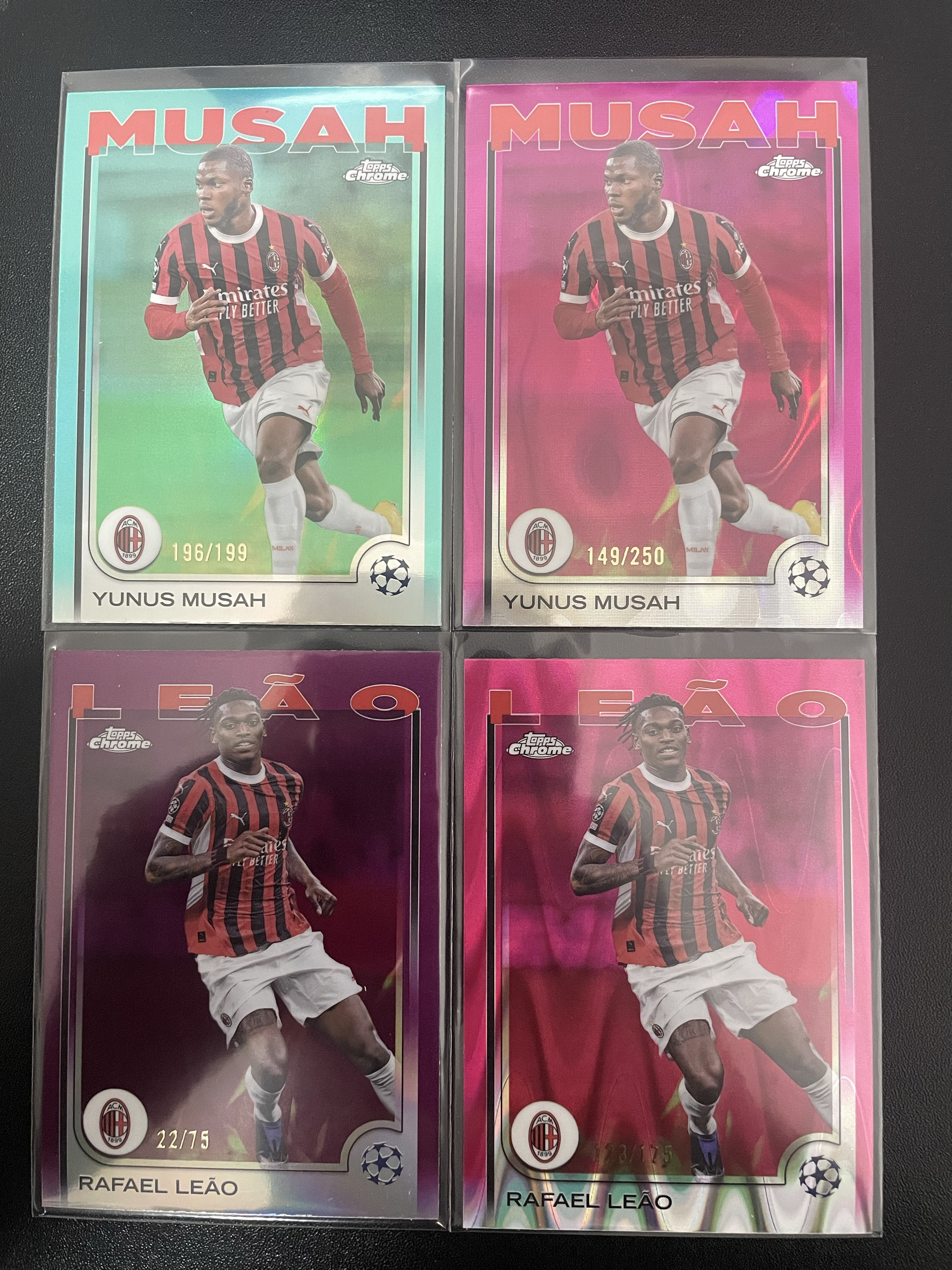 2025 Topps Chrome Rafael Leao 欧冠 AC米兰 莱奥 穆萨 限量 红折 天蓝折 75编 175编 199编 250编 卡品如图 收藏凑套必备