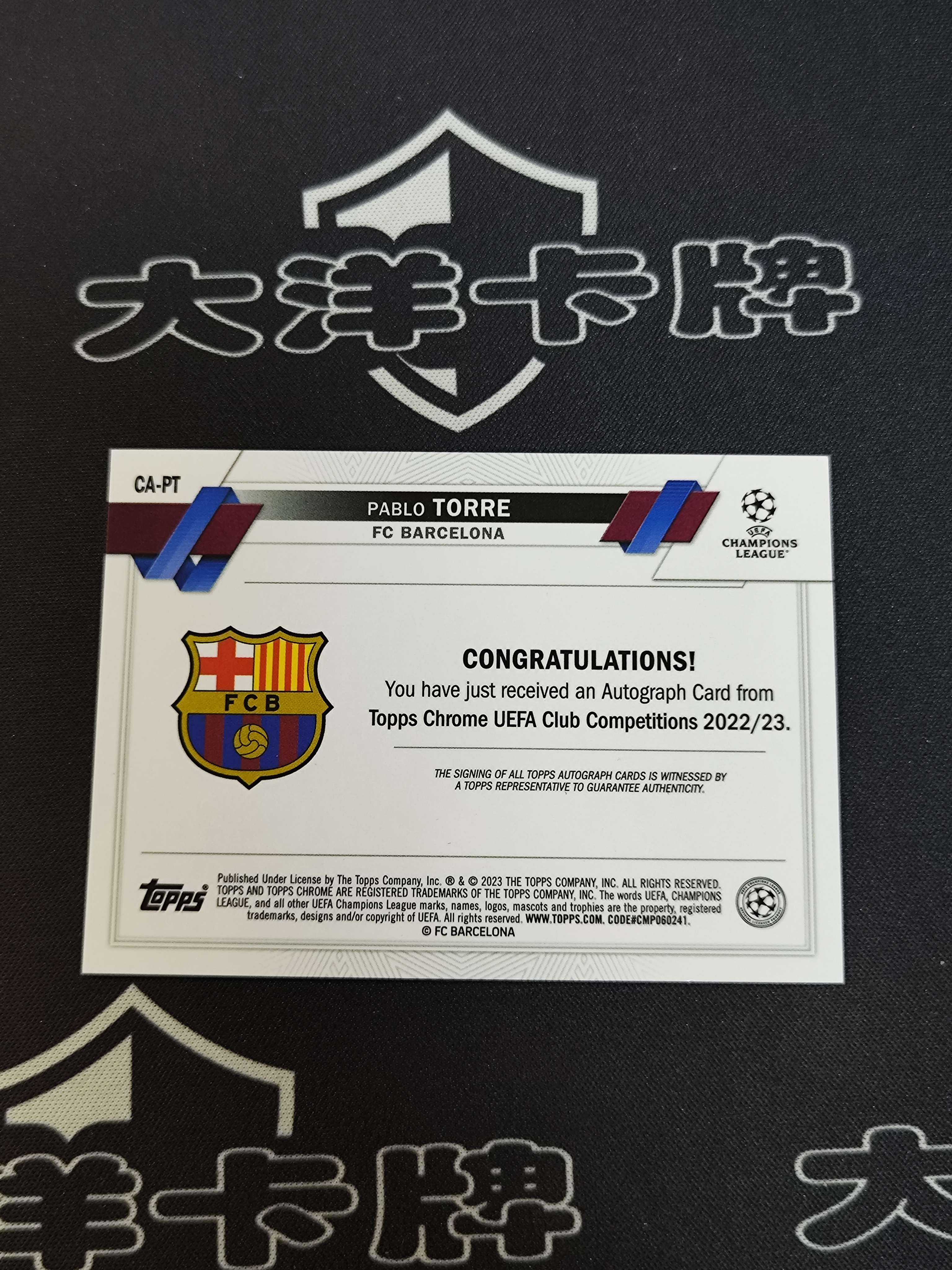 2023 Topps Chrome Pablo Torre RC 【大洋代卖】足球 巴勃罗托雷 新秀 签字 折射 西班牙 西甲 巴塞罗那 欧冠 世界杯 不累计 实体店免费代卖 手续费全网最低 海南