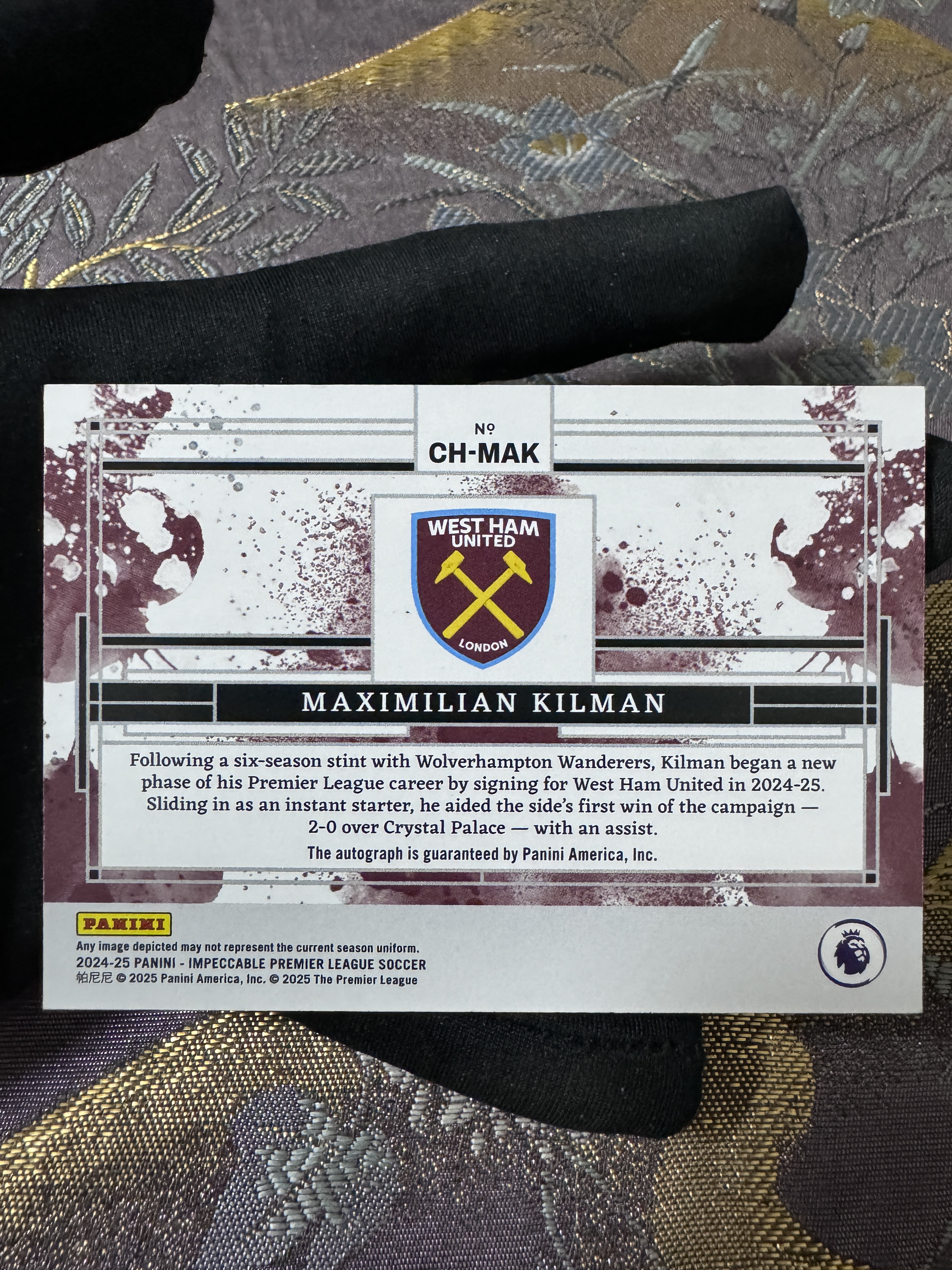 2025 Panini Impeccable Maximilian Kilman 英超 小真金 西汉姆联 马克西米利安 基尔曼 油画 卡签 俱乐部历史 数据签 29/95编 签字 完美墨迹 实卡精美