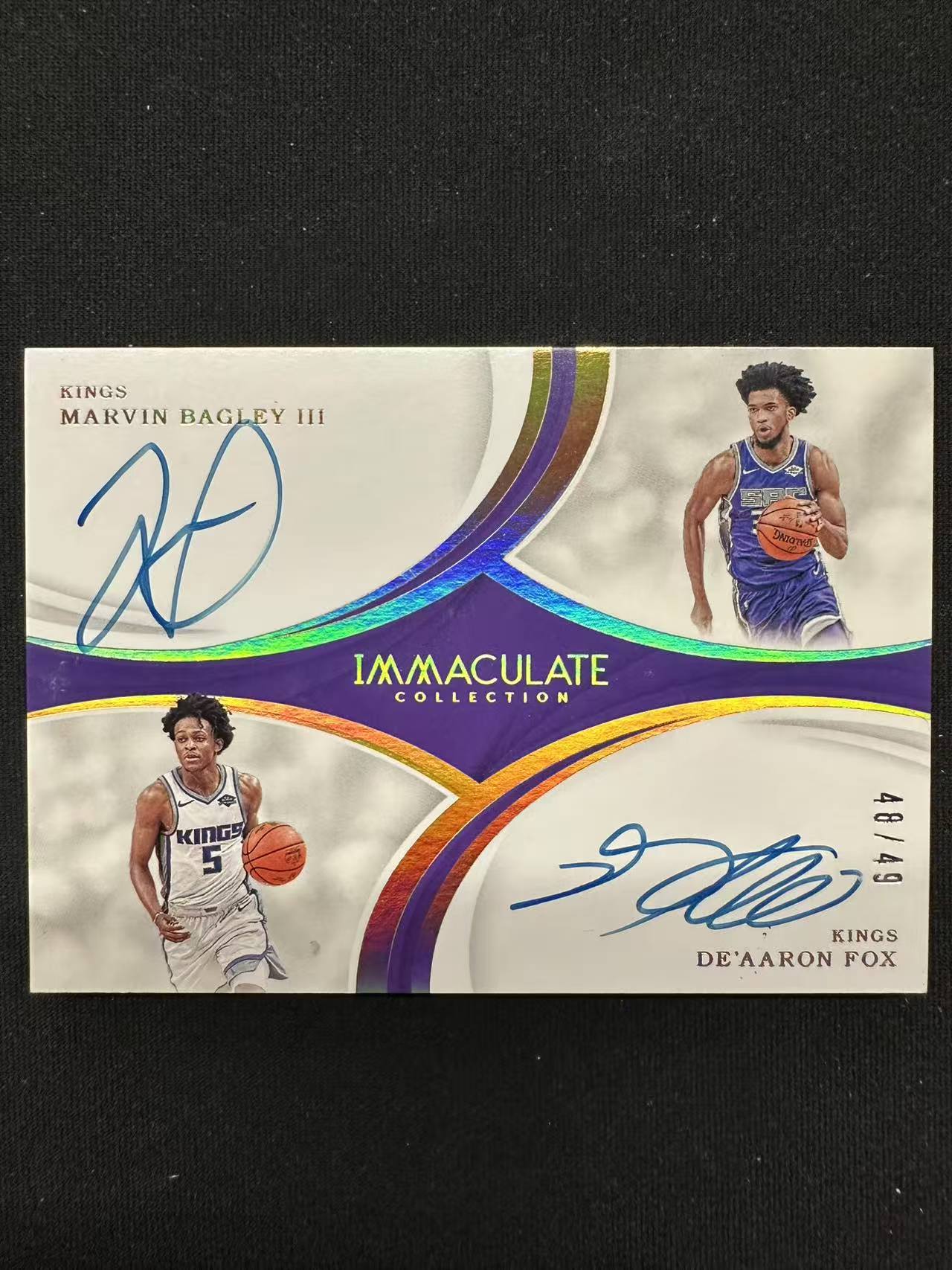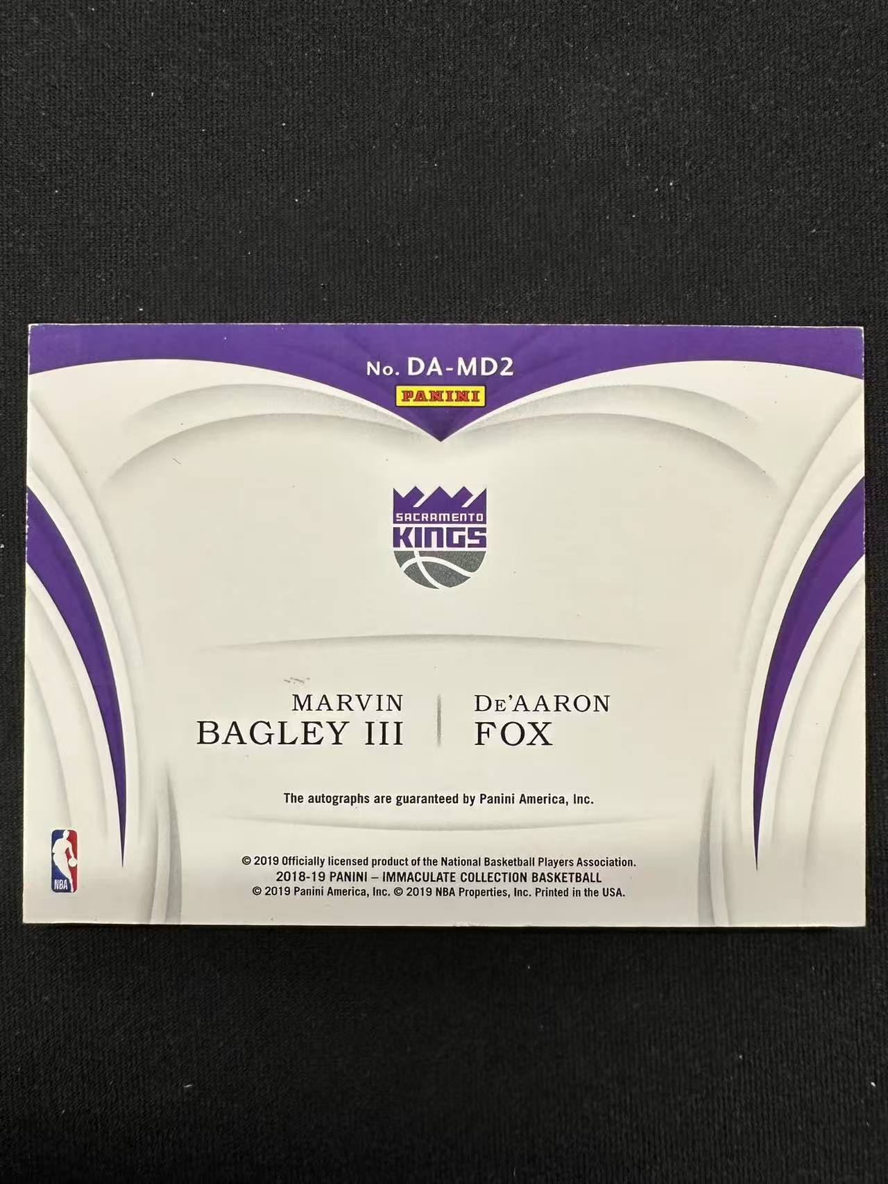 2018-19 Panini Immaculate 国王 小狐狸 达龙福克斯 新秀RC 马文巴格利三世 双签 双人签字 49编
