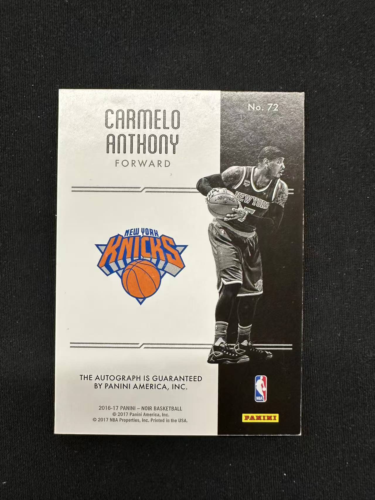 2016-17 Panini Noir Carmelo Anthony 卡梅隆 安东尼 甜瓜 纽约尼克斯 75编 签字 签名 卡签 镜面 诺尔
