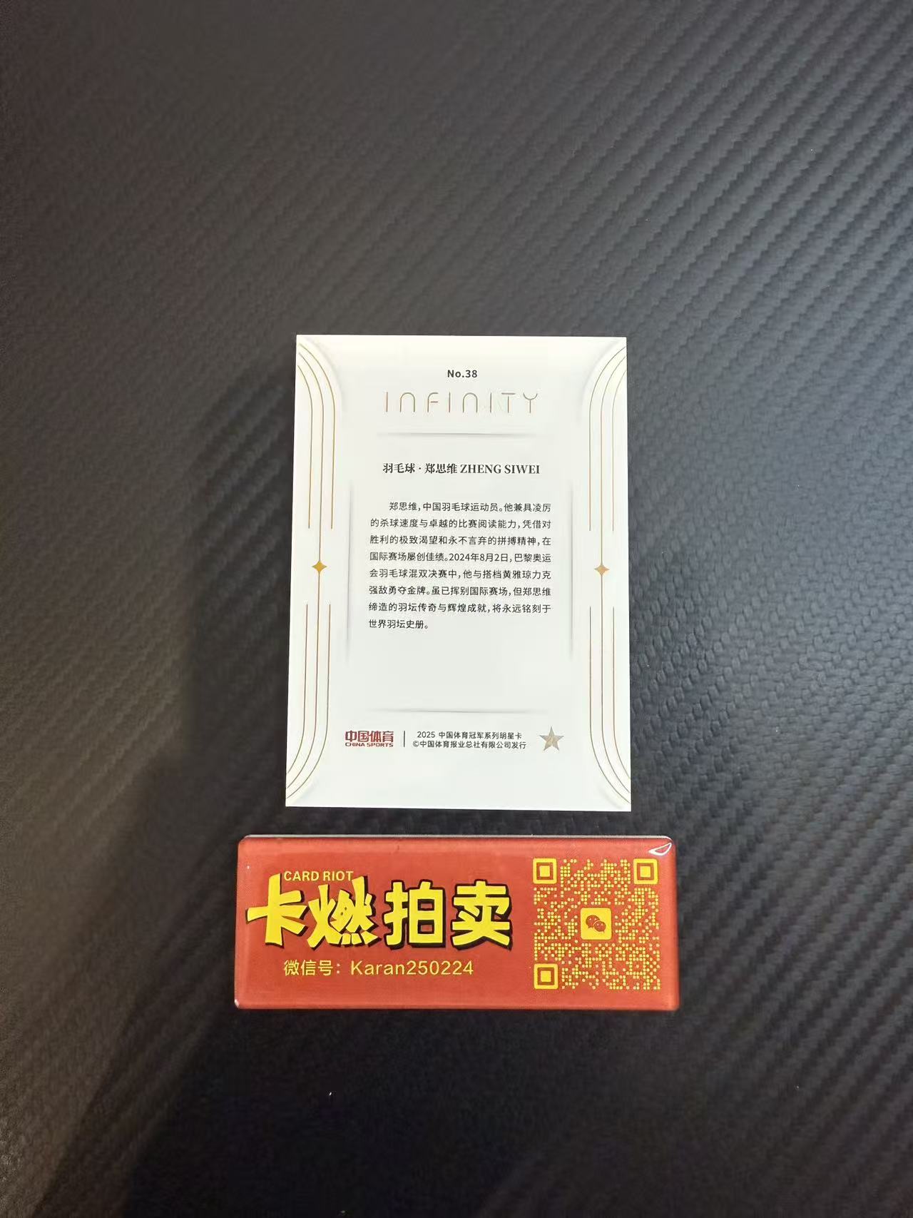 2025 【卡燃拍卖预付85%】 中国体育 无限 郑思维 中国体育 无限 羽毛球 郑思维 /10编 低编 金平行 base 值得收藏 卡品看图【西瓜1122】
