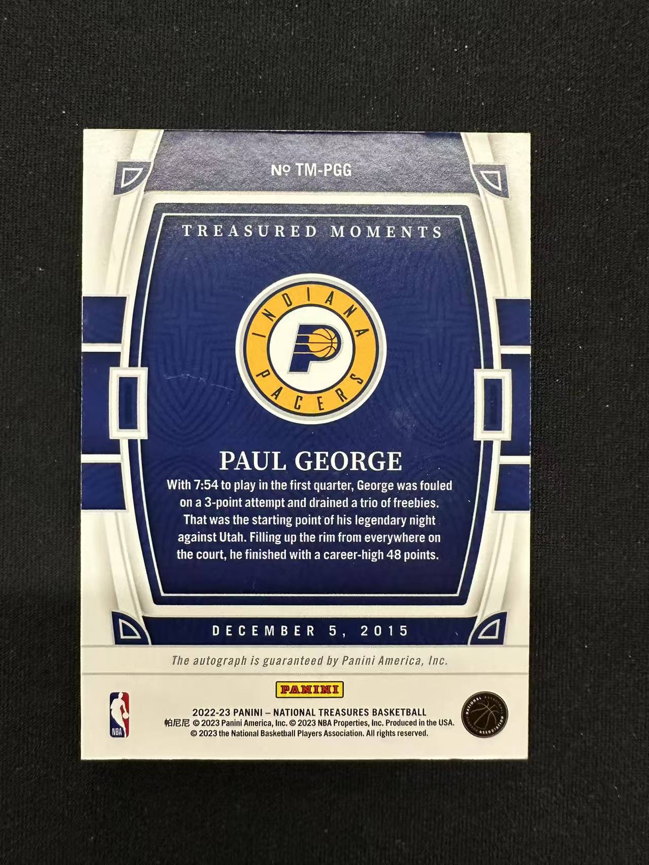 2022-23 Panini National Treasures Paul George 国宝 步行者 保罗 乔治 泡椒 时刻签 49编 签字 卡签