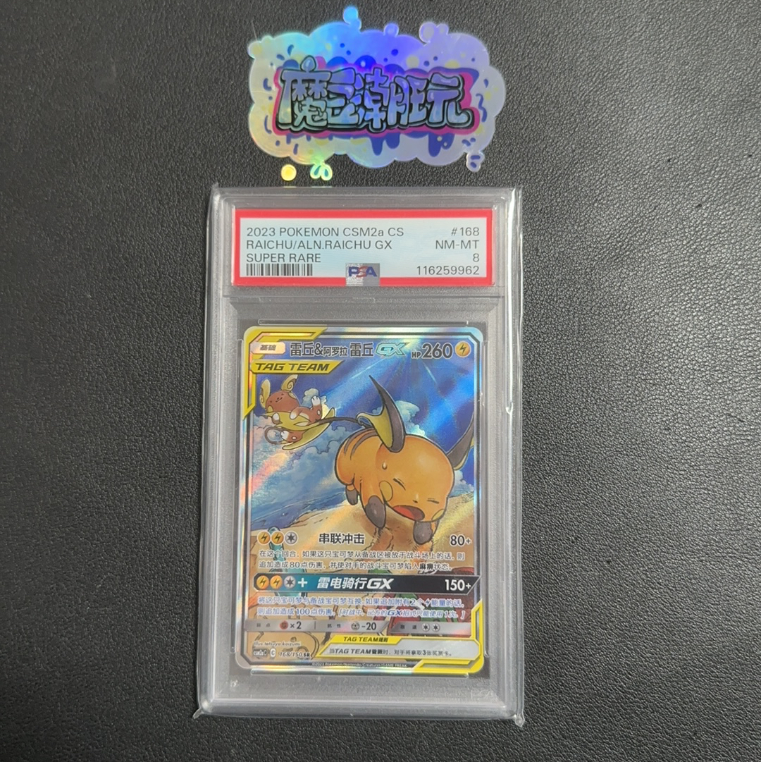 2023 Pokemon TCG 太阳&月亮 交相辉映 沐 【魔豆拍卖】简中 宝可梦 雷丘&阿罗拉 雷丘GX 全图闪 SR 高罕 CSM2AC 168/150 PSA8 评级 肉 chs