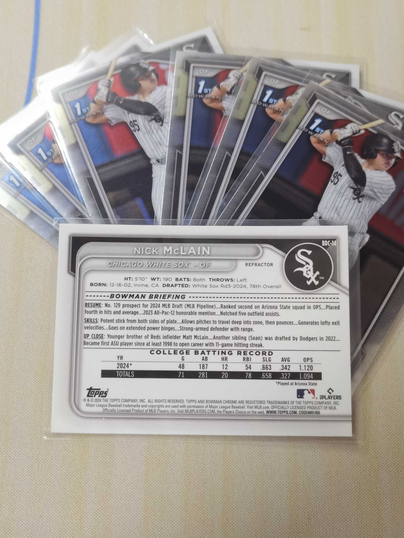 2024 Bowman Chrome Nick Mclain RC 尼克 麦克莱恩!白袜农场大雾内野游击手!新秀年1st正银折+base 打包lot!eBay价高,可搏psa高分!长期看涨!