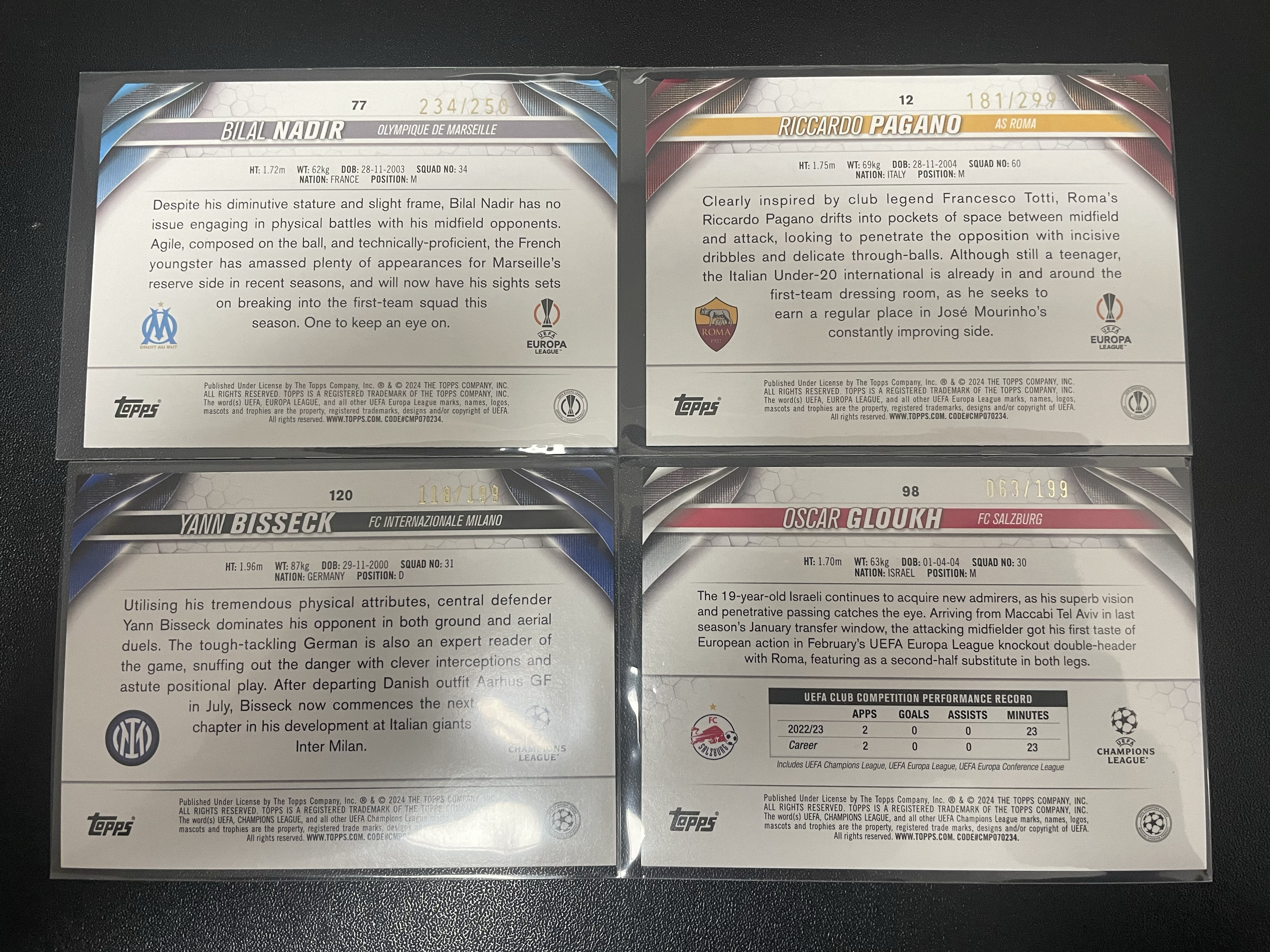 2024 Topps UCL Riccardo Pagano RC 欧冠 罗马 新秀 帕加诺 Nadir Bisseck Gloukh 限量 199编 250编 299编 lot 卡品如图