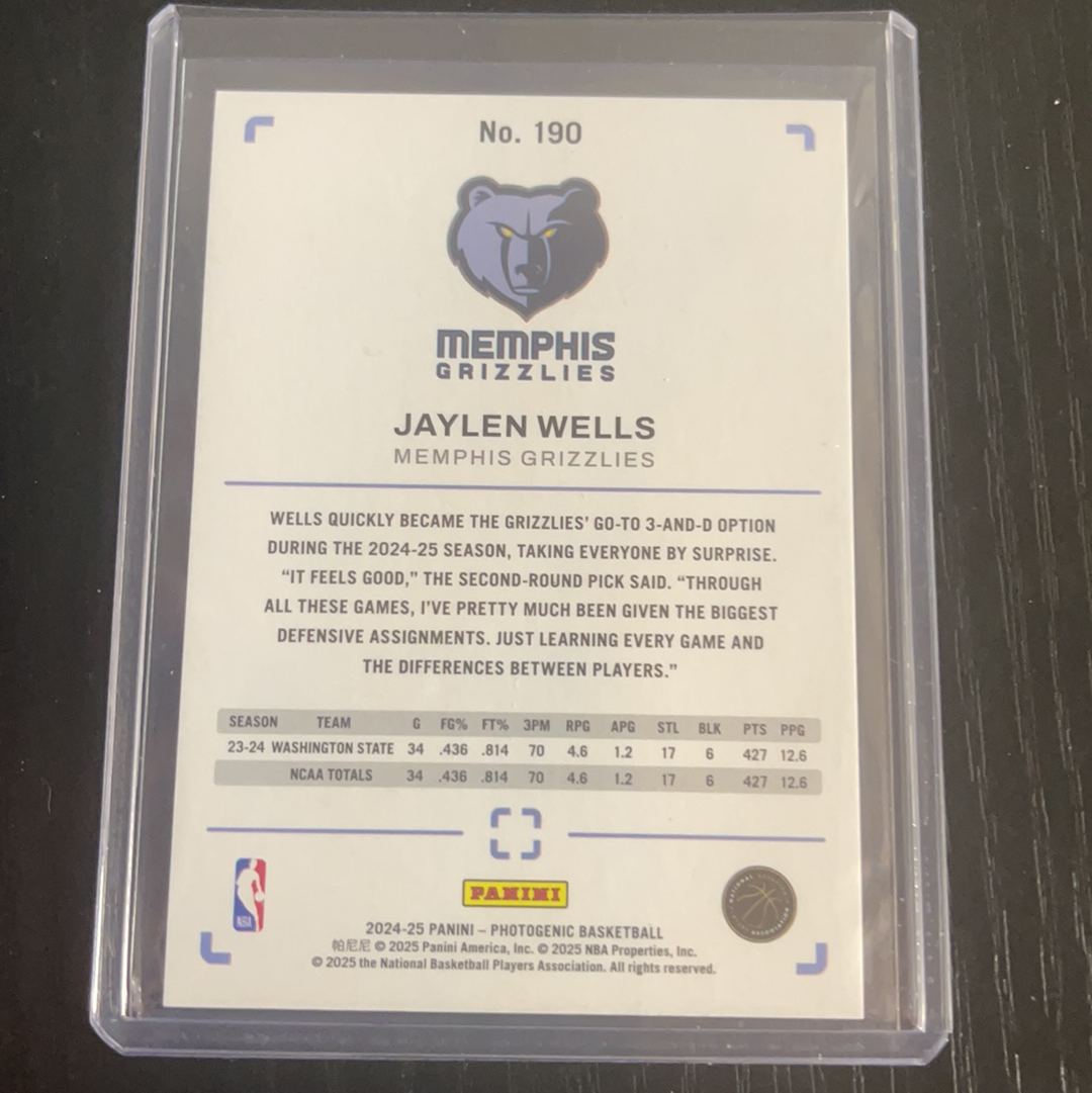 2024-25 Panini PaniniPhotoGenicNBA Jaylen Wells RC 上镜 新秀 灰熊 杰伦 威尔斯 25编 mojo折 迷宫折 折射 卡品如图 收藏必备