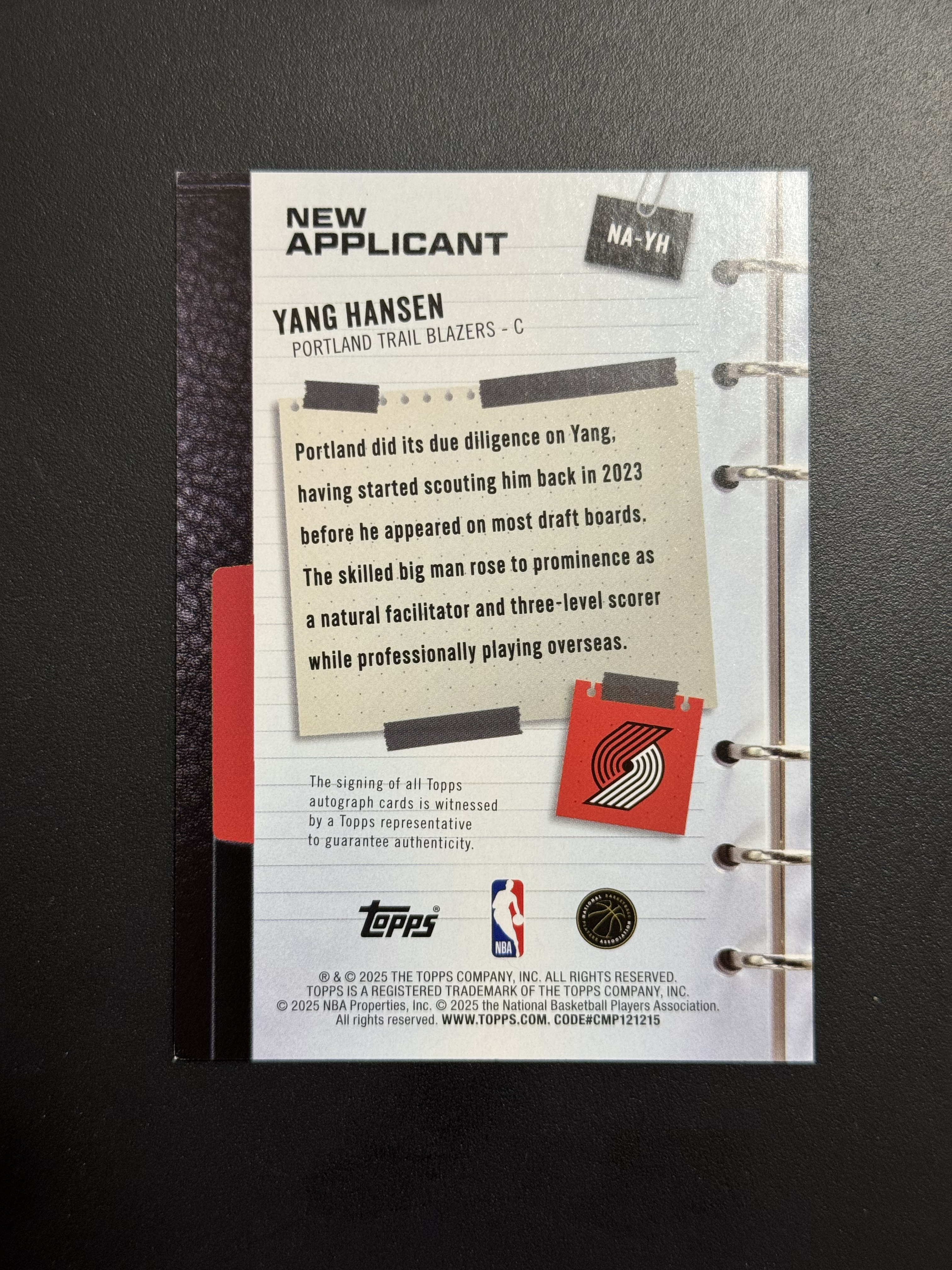 2025 Topps New 杨瀚森 Yang Hansen RC 新秀 开拓者 New Applicant 新晋签 签字 签名 贴签非卡签 非科比詹姆斯库里乔丹东契奇华子字母