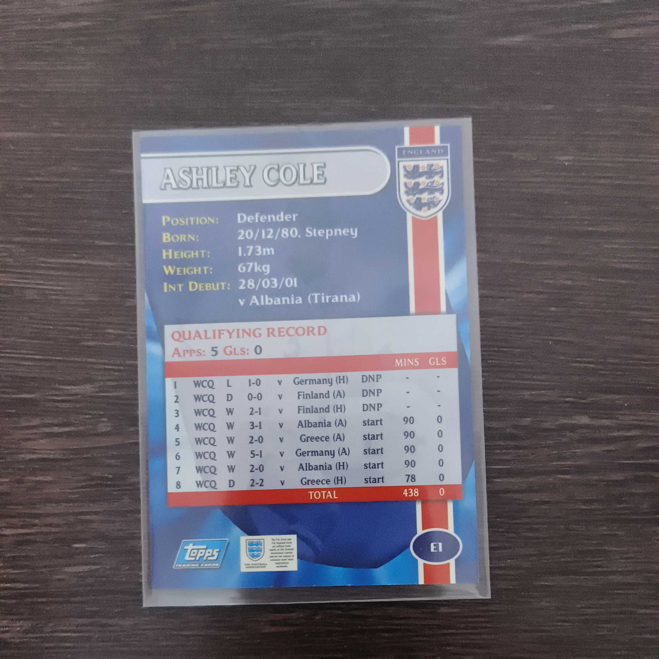 【标准版代拍预付80%】 2002 Topps England 韩日世界杯 英格兰队盒 阿什利科尔 切尔西 英格兰背景选图 超美蓝色反光折射闪卡 三狮军团队徽背景 黑人