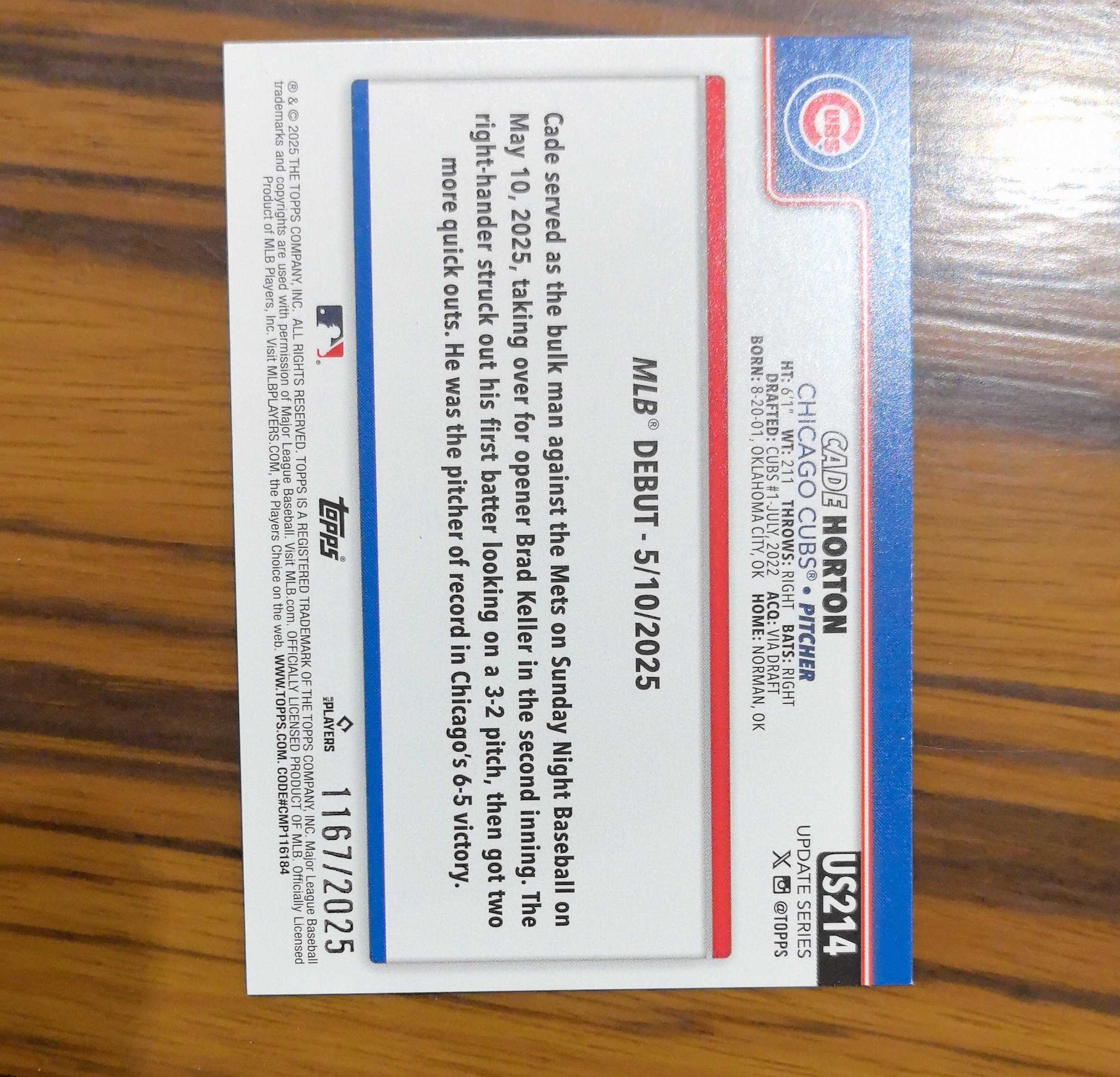2025 Topps 【锡安代卖】 累计照常 棒球mlb series 2025编铜平行 芝加哥小熊热门新秀王牌投手 cade horton 卡品如图 楼