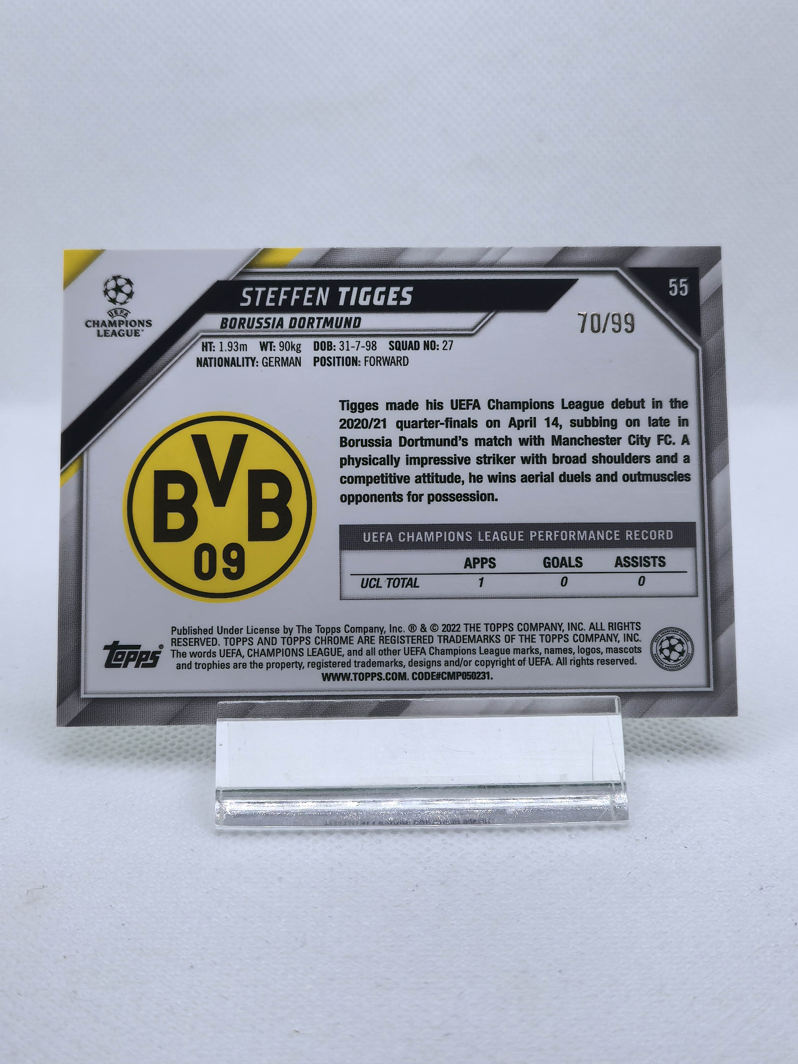 2022 【OT拍卖0手续】 Chrome Steffen Tigges RC 泰格斯 99编 绿折 多特蒙德 新秀 卡品如图 罗马诺04