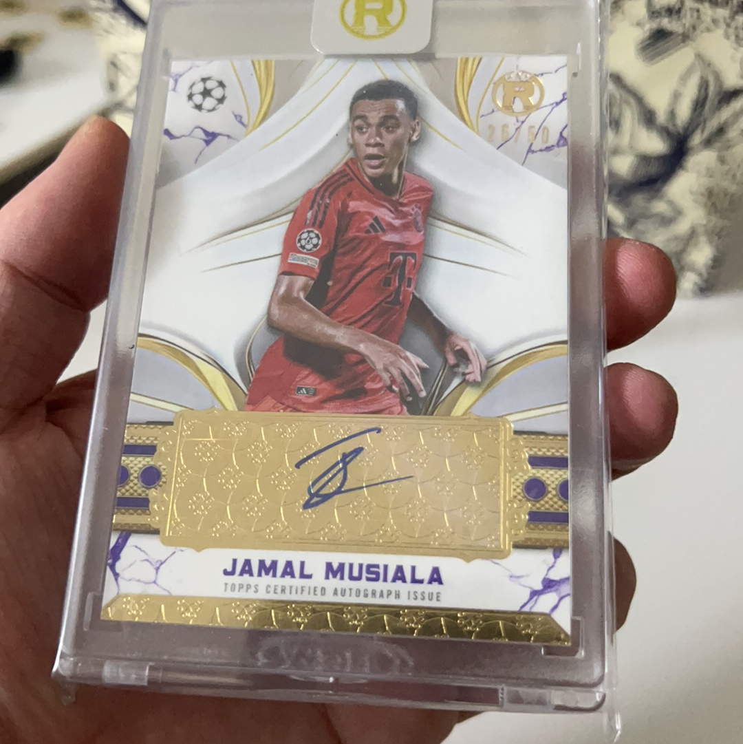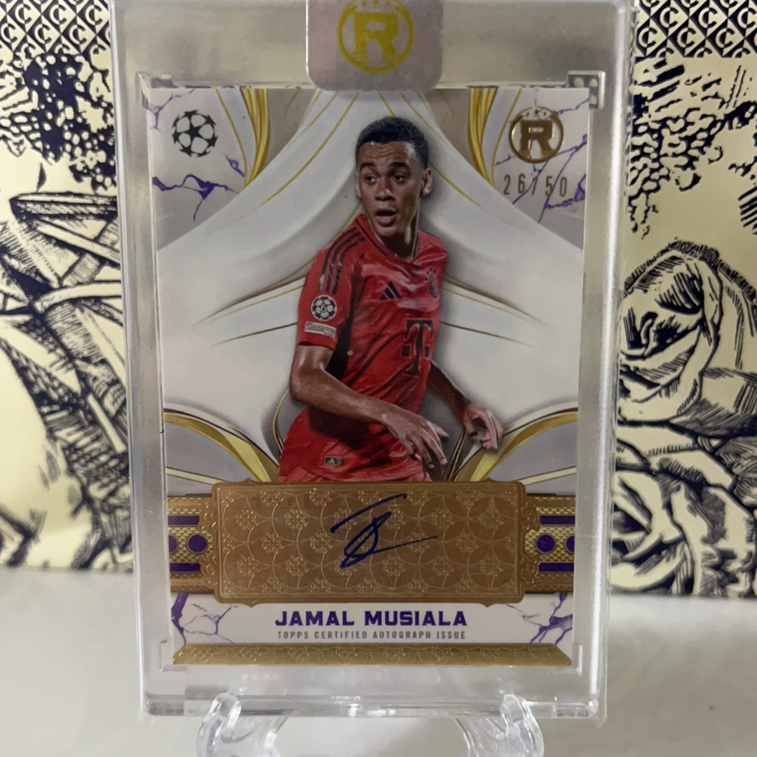 2025 Topps UEFA Champions League Jamal Musiala 德国 拜仁慕尼黑 贾马尔 穆夏拉 尊耀 26/50编 金折 签字 原封砖 当红炸子鸡 收藏必备