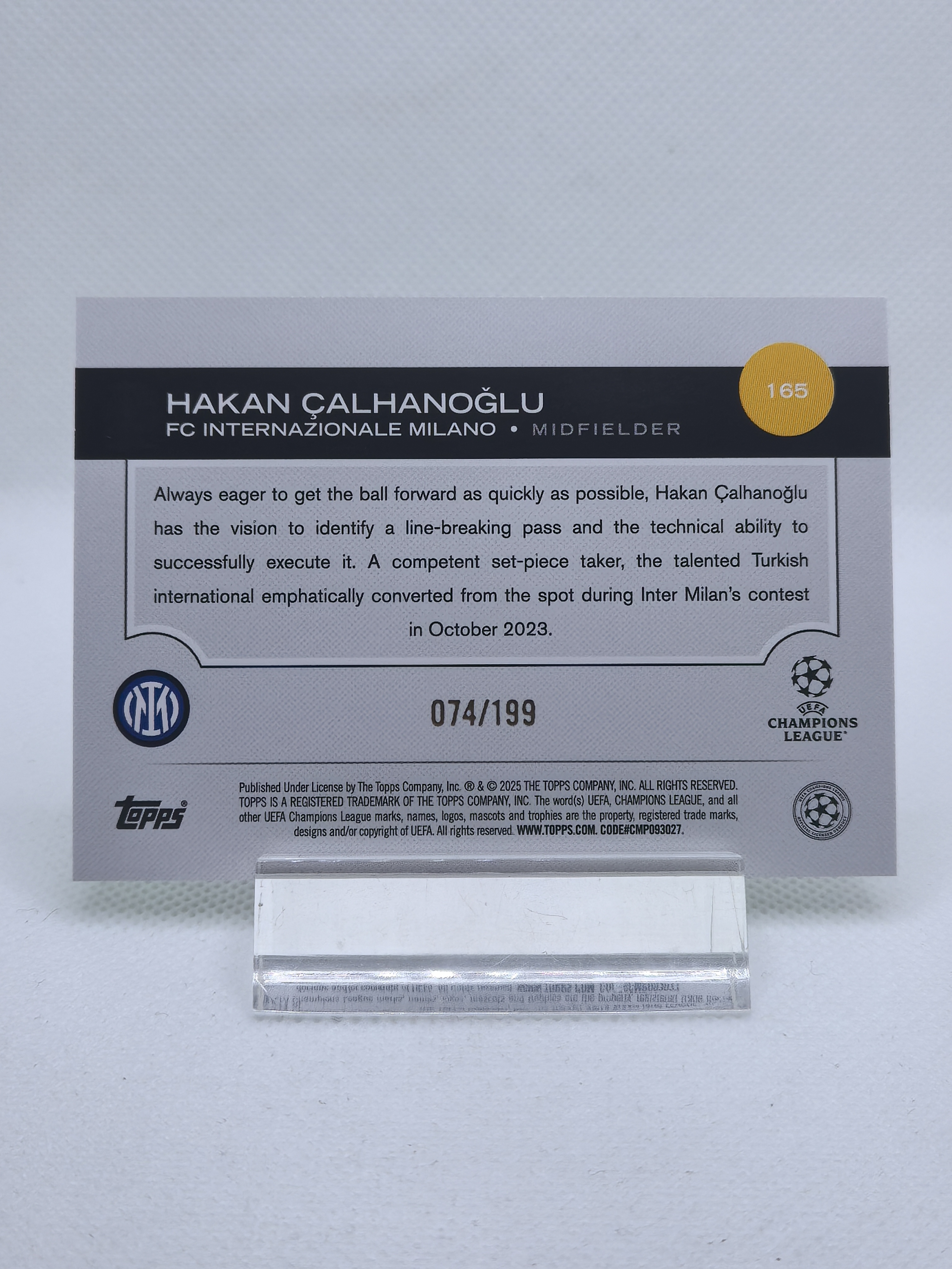 2025 【OT拍卖0手续】 UEFA Champions League Hankan Calhanoglu UCC 恰尔汗奥卢 199编 绿折 国际米兰 卡品如图 GH04
