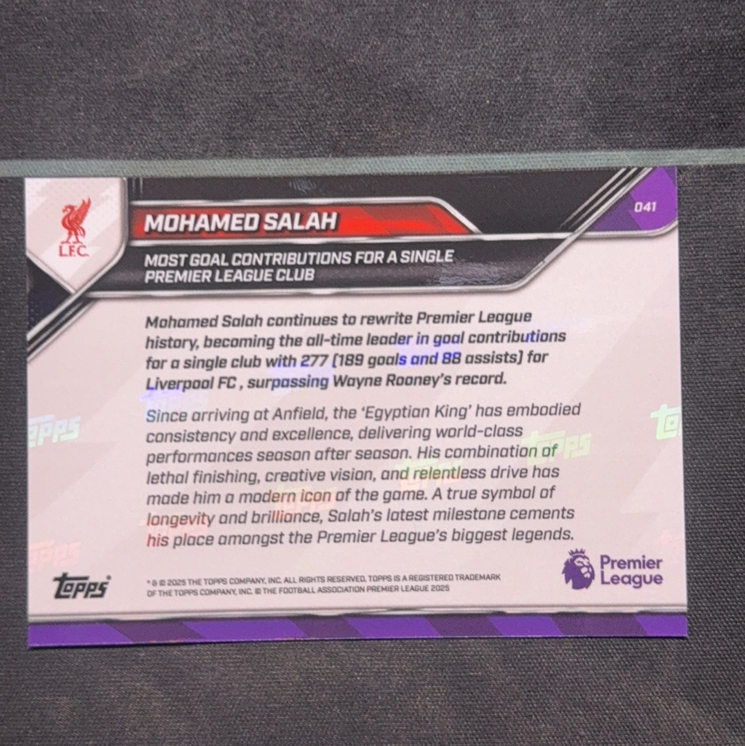 2024-25 Topps Now Mohamed Salah 萨拉赫 埃及 罗马 意甲 美洲杯 利物浦 英超 德国 英格兰 欧冠 欧洲杯 世界杯 英超纪录:为单一俱乐部打进最多进球球员 屁屁卡卡