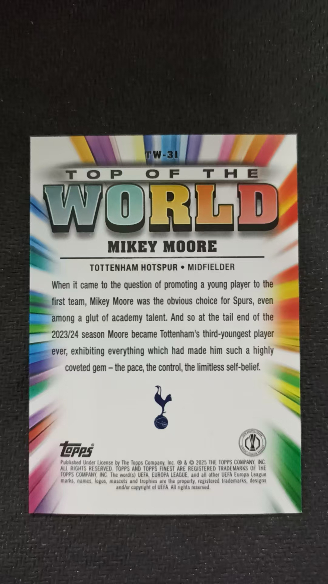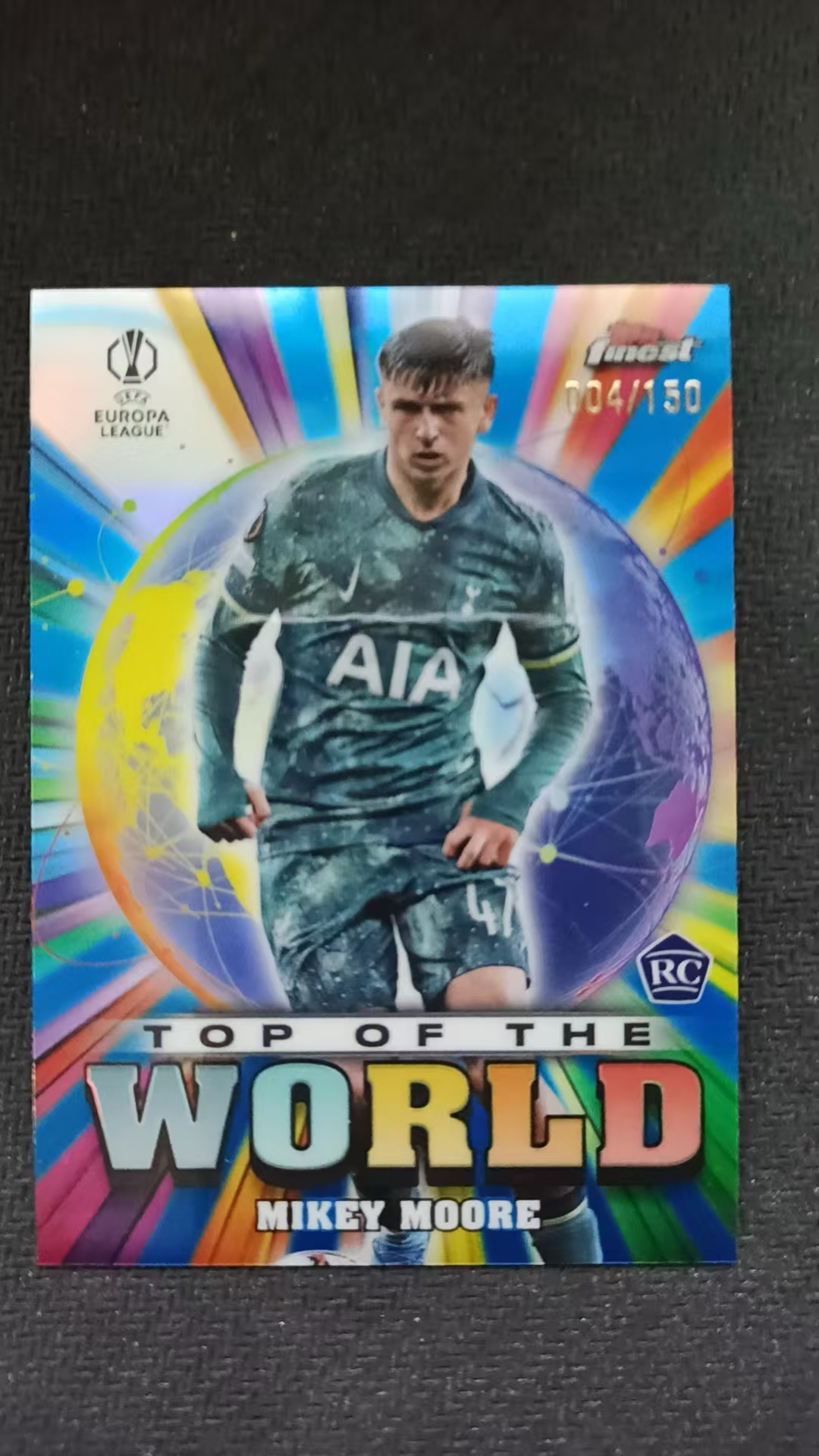 2025 Topps Finest Mikey Moore RC 欧战Finest系列 米奇 摩尔 150编 蓝折 世界之巅特卡 热刺 RC新秀 潜力无限 值得投资 hx
