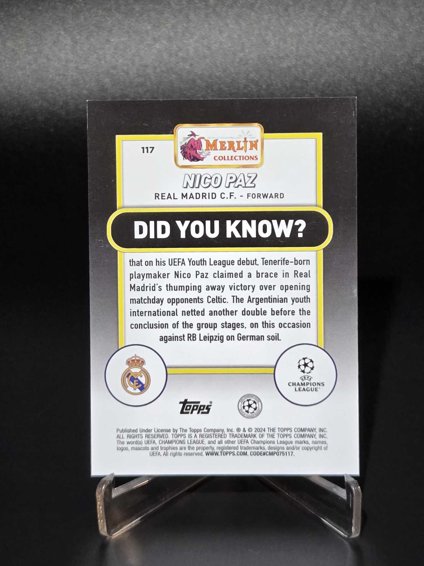 2024 Topps Merlin chrome NICO PAZ RC 【卡汇拍卖】 尼科帕斯  派斯 梅林 皇马 新秀 128/175编 意甲 科莫 豪门猎物 卡品如图