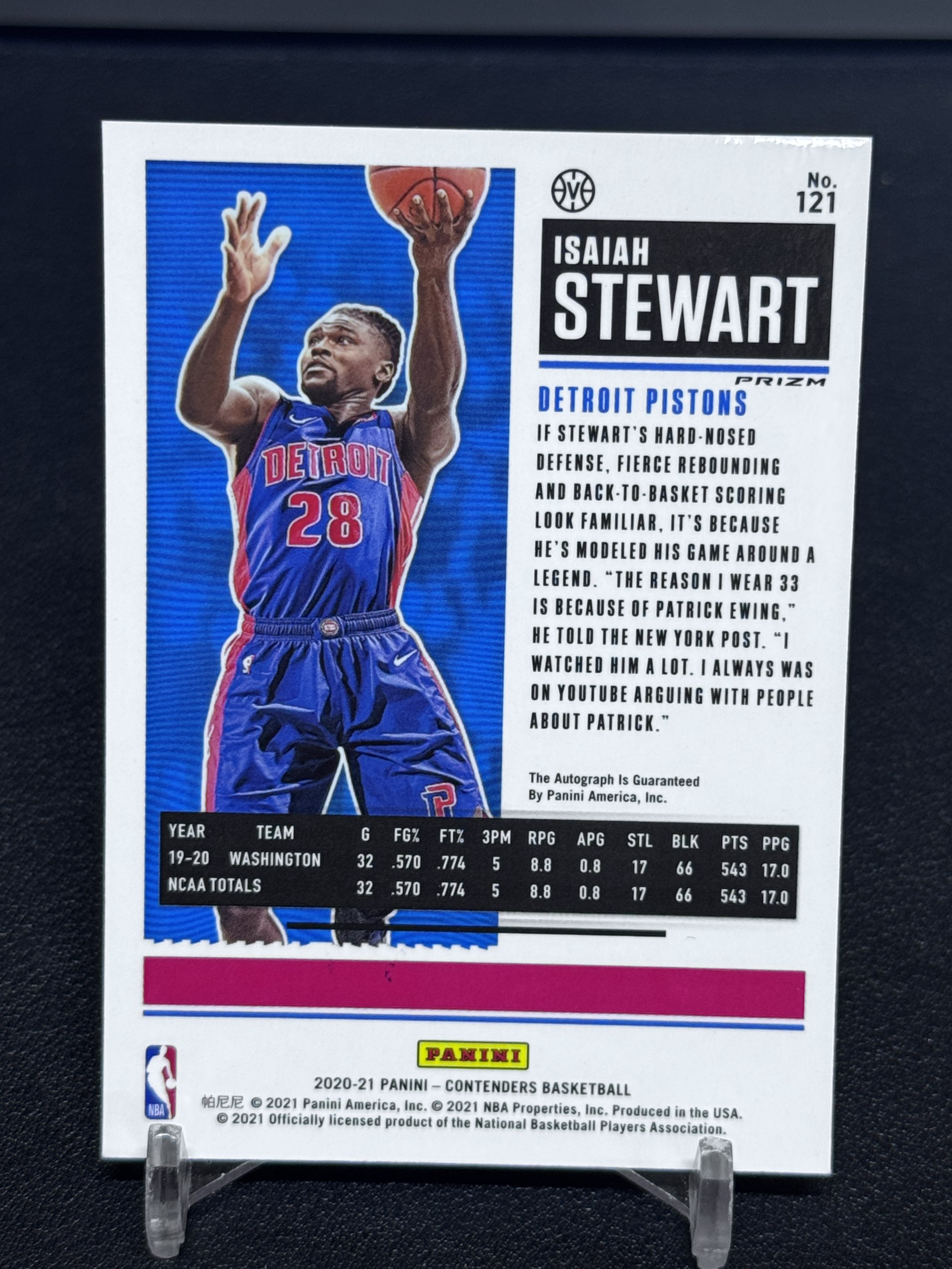 【浩行拍卖 截标预付82%】2020-21 panini Contenders optic isaiah stewart 球票 活塞 以赛亚 斯图尔特 RC 新秀 银折 折射 签字 卡签 专收必备 瑕疵看图「尊驾」1123B01裊