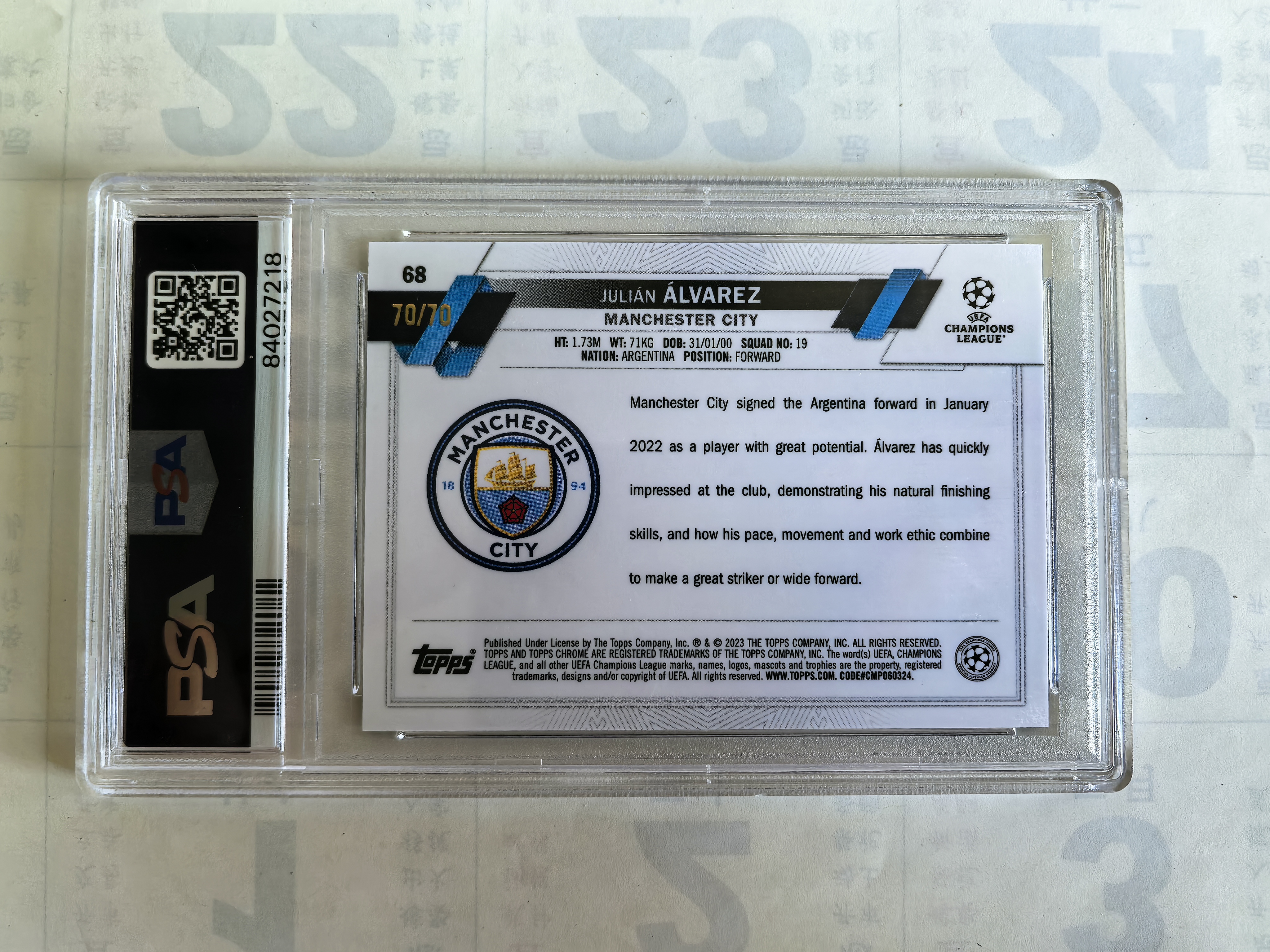 2022-23 Topps Chrome Julián Álvarez RC 欧冠 tc 碎冰 70编 尾编 阿根廷🇦🇷 英超 曼城 马竞 马德里竞技 小蜘蛛 阿尔瓦雷斯 新秀 PSA10分