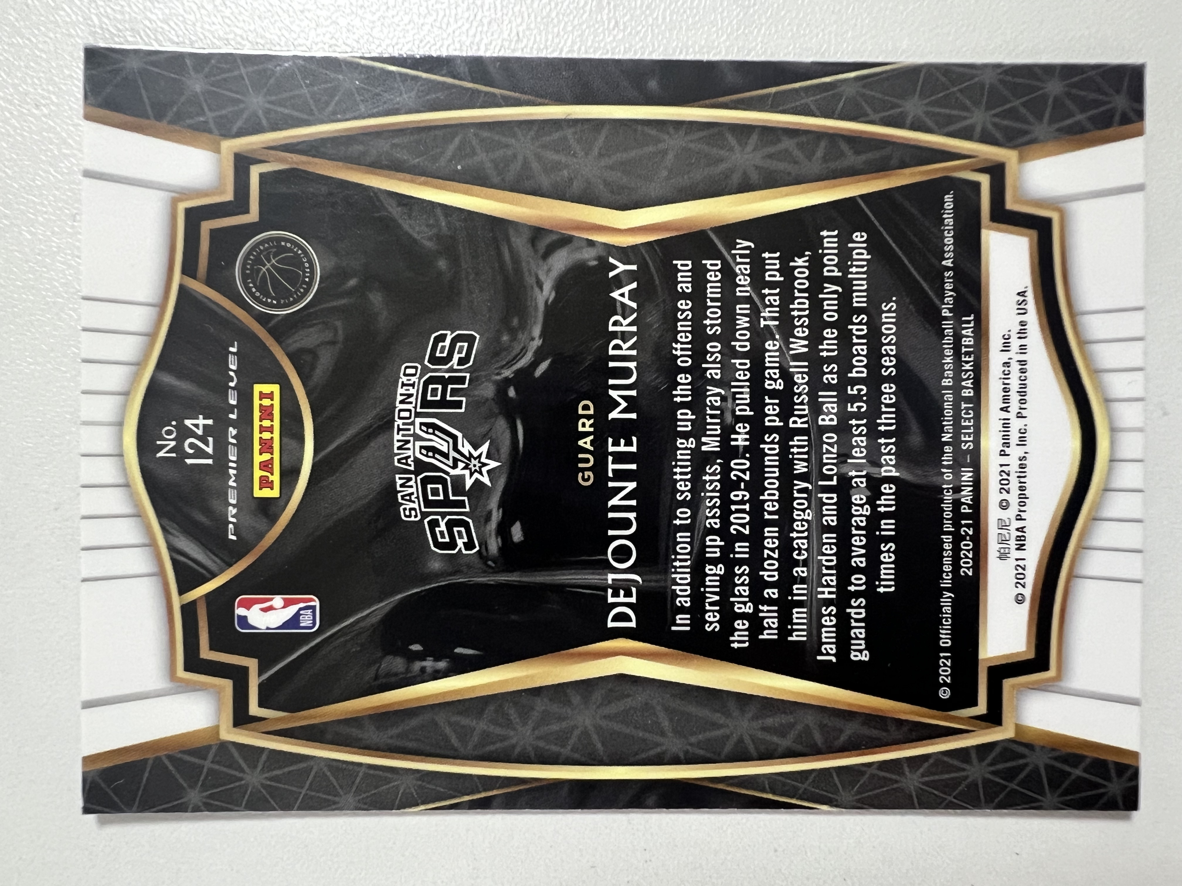 2020-21 Panini Select Dejounte Murray #124德章泰·穆雷 圣安东尼奥马刺 base 收藏凑套 卡品如图