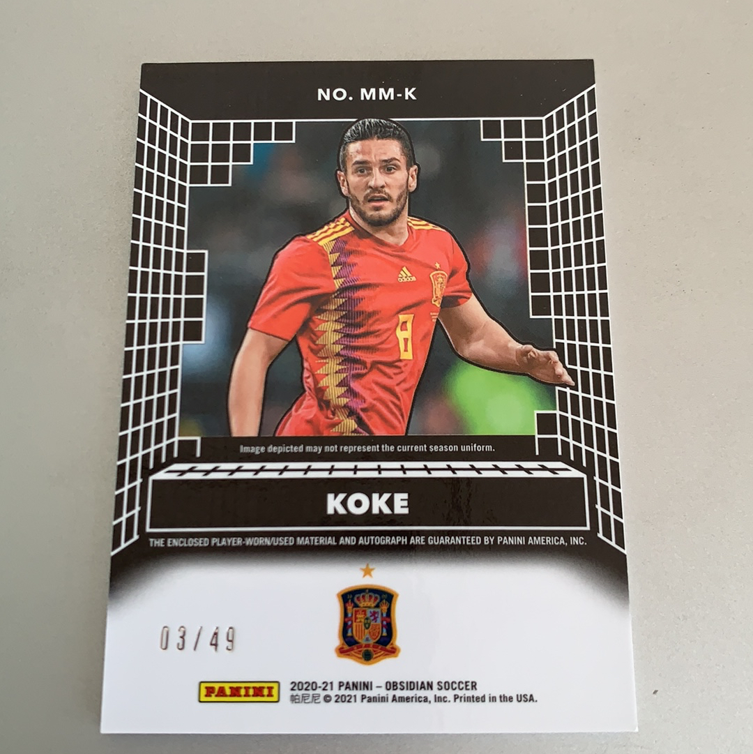 2020-21 Panini Obsidian Koke 【玄兔拍卖】科克 49编 亲穿球衣 切割 签字 西班牙 马德里竞技 一人一城