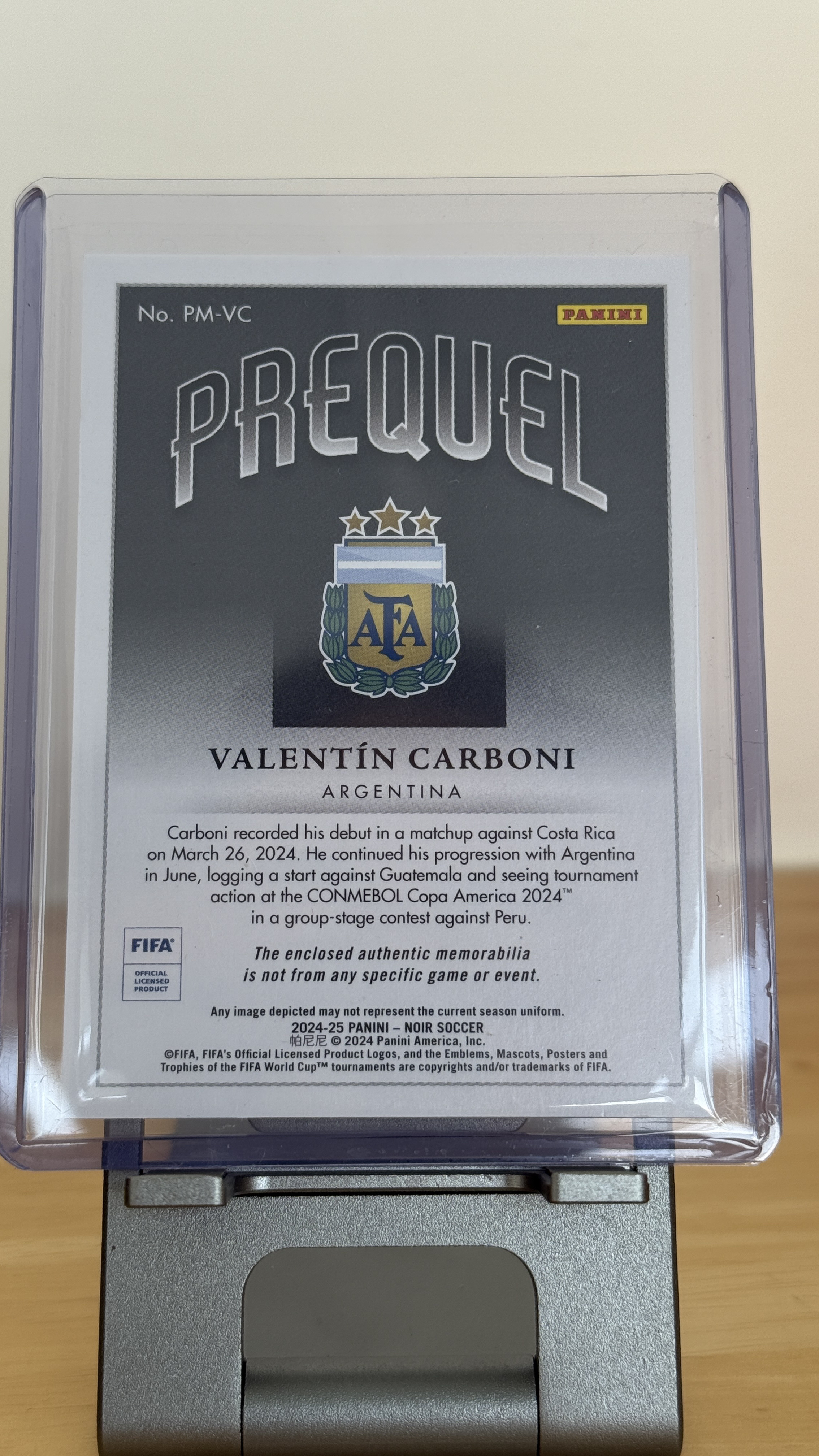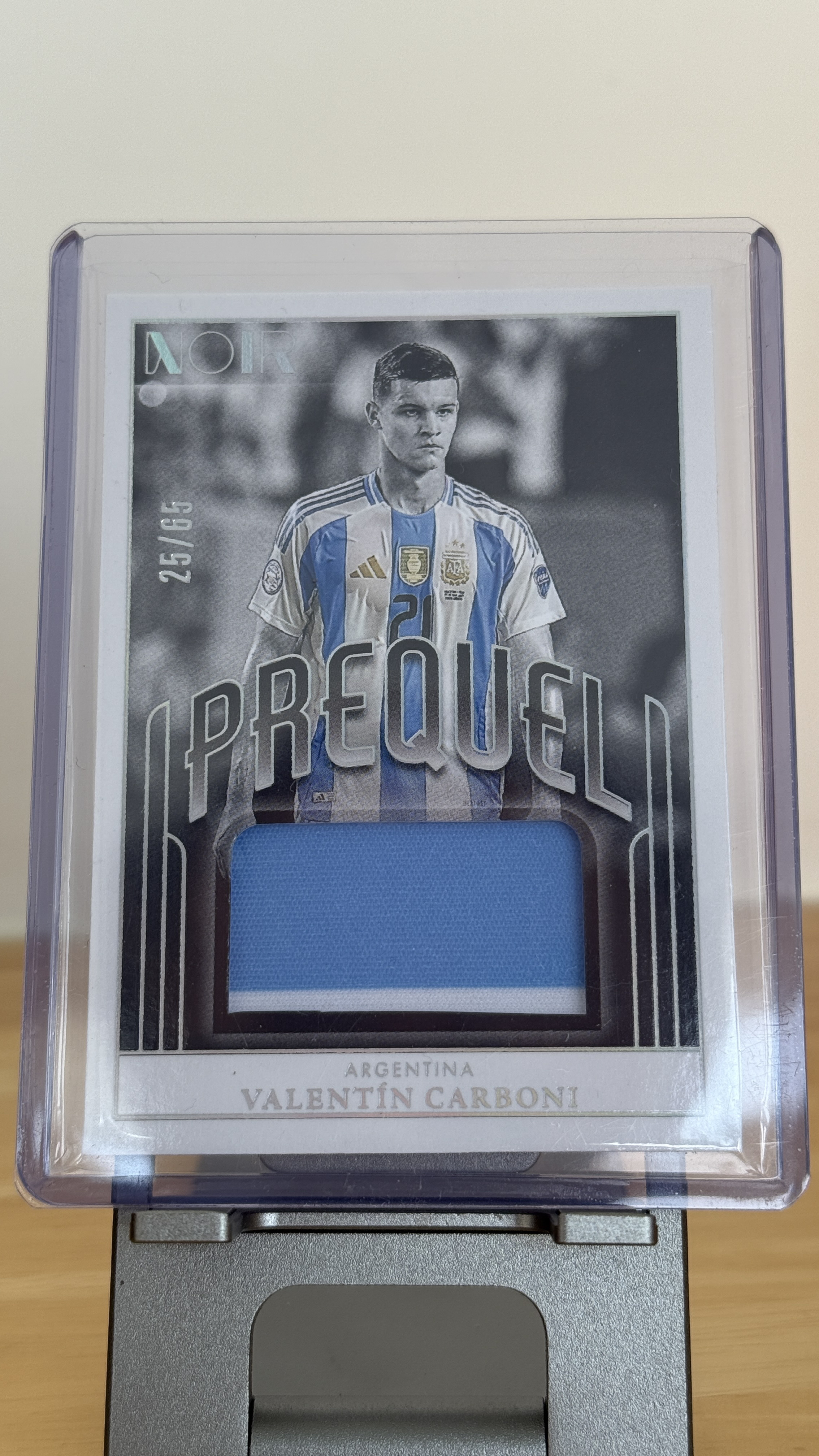 2024-25 Panini Noir Valentín Carboni 诺尔 阿根廷 卡尔博尼 球衣卡 25/65 双色切割 patch 卡品如图