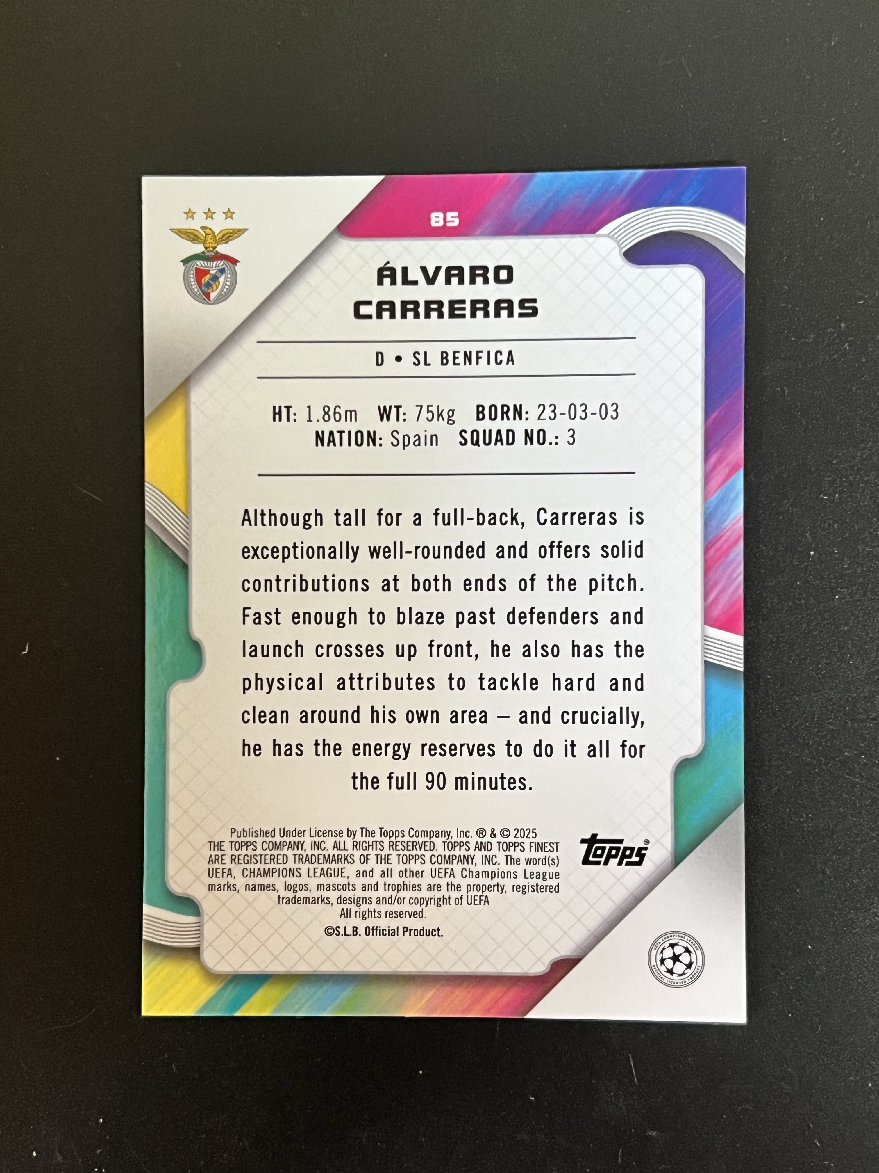 2025 Topps Finest Alvaro Carreras RC 欧冠Finest 阿尔瓦罗-费尔南德斯 A费 250编 紫熔岩折 RC新秀 皇马新援 本菲卡 收藏必备