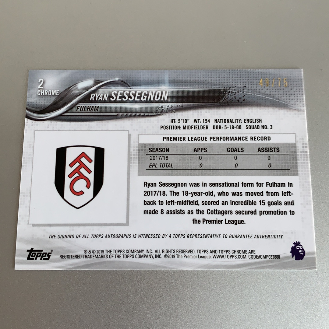 2019 Topps Chrome Ryan Sessegnon 【玄兔拍卖】塞塞尼翁 75编 签字 富勒姆 热刺 英格兰