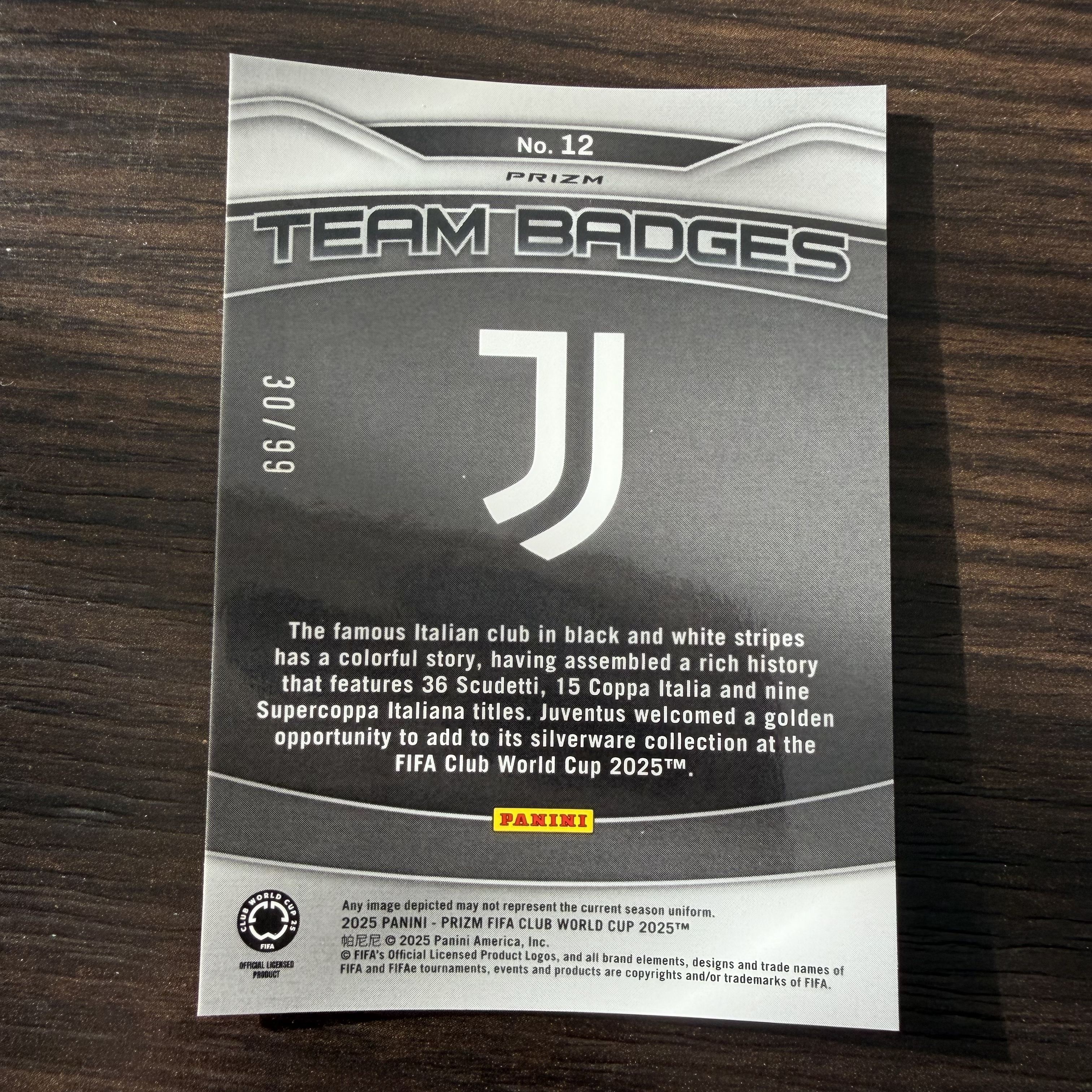2025 Panini Prizm FIFA Club World Cup Portu 世俱杯 尤文图斯 队徽 /99编 银折 【默认微瑕一日一快递 不累计 不发到付】王哥