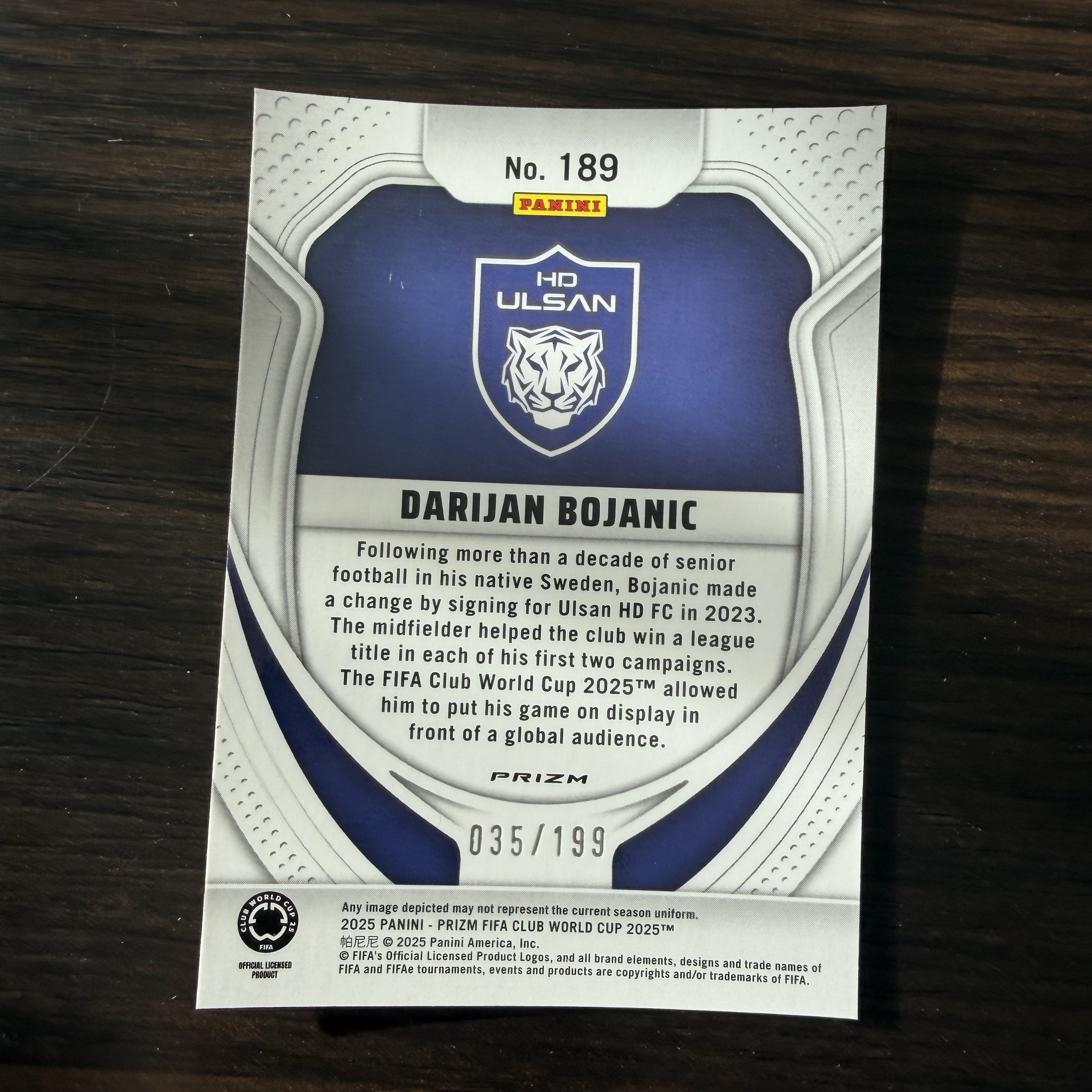 2025 Panini Prizm FIFA Club World Cup世俱杯 Darijan Bojanic 博亚尼奇 蔚山现代 /199编 红折 【默认微瑕一日一快递 不累计 不发到付】王哥