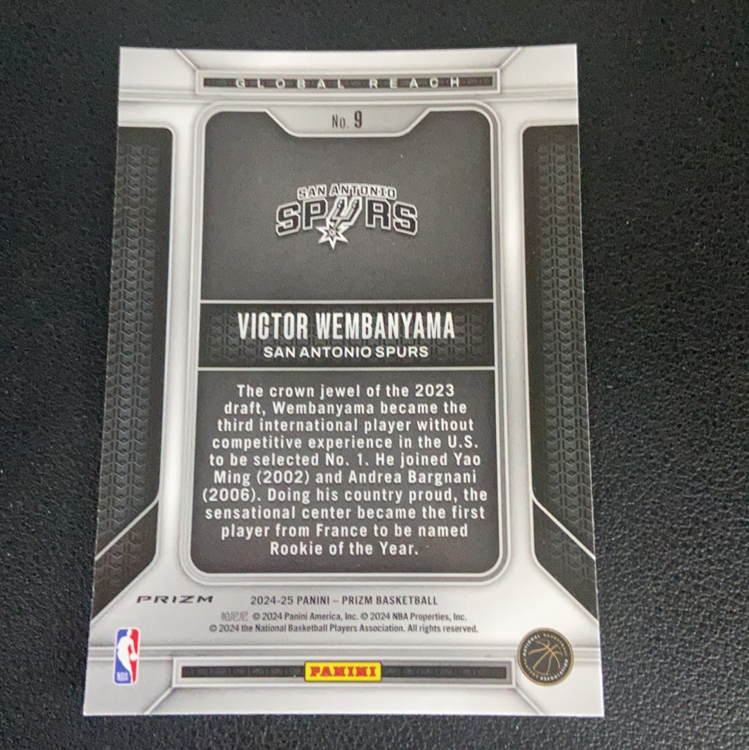2024-25 Panini Prizm Victor Wembanyama 【9527拍卖】 PZ 马刺 维克托 文班亚马 Global Reach特卡 银折 卡品如图