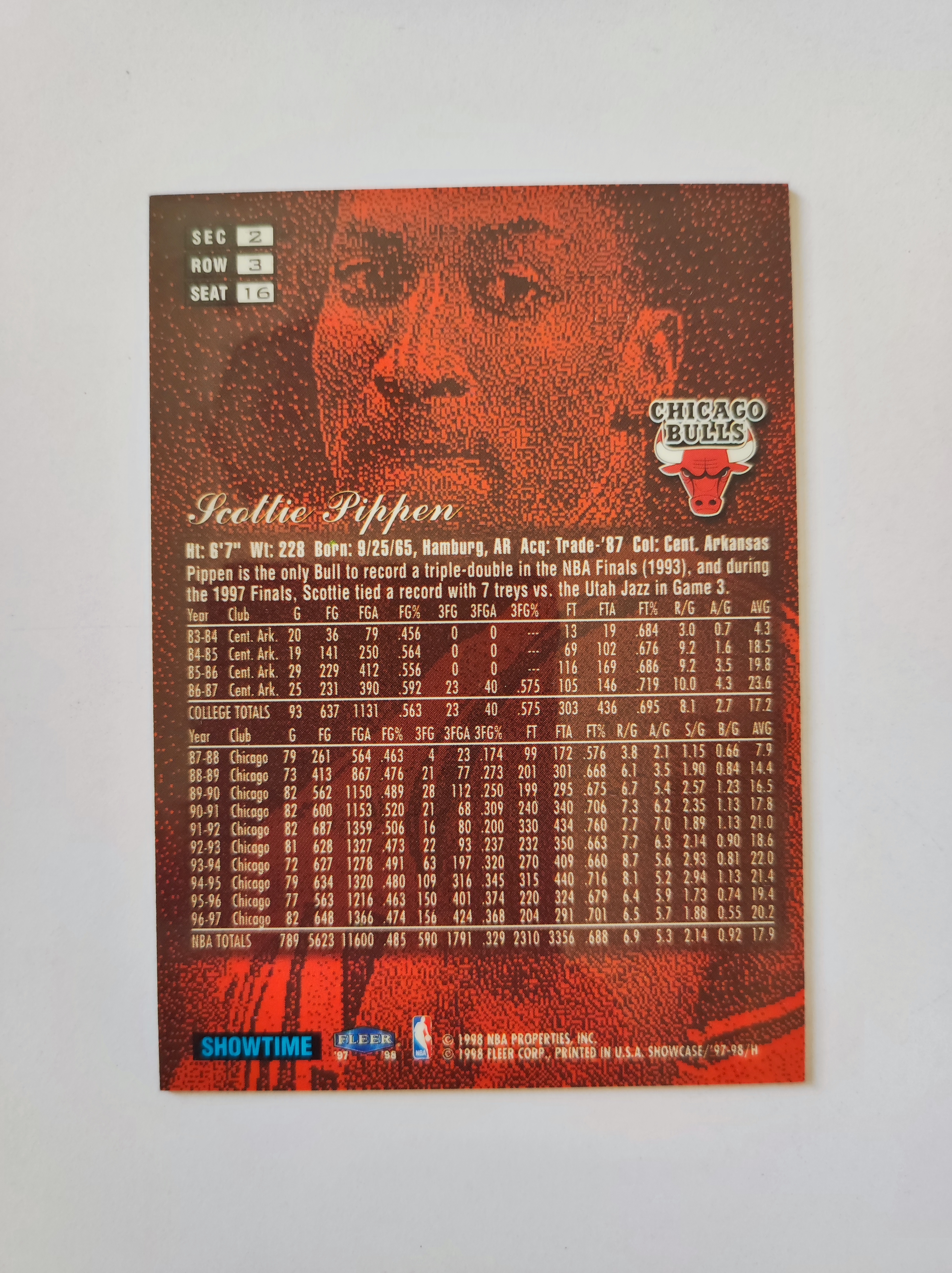 1997-98 Fleer Showcase Scottie Pippen 斯科蒂 皮蓬 老卡 折射 大头 公牛 flair 蝙蝠侠 名人堂名宿 瑕疵看图