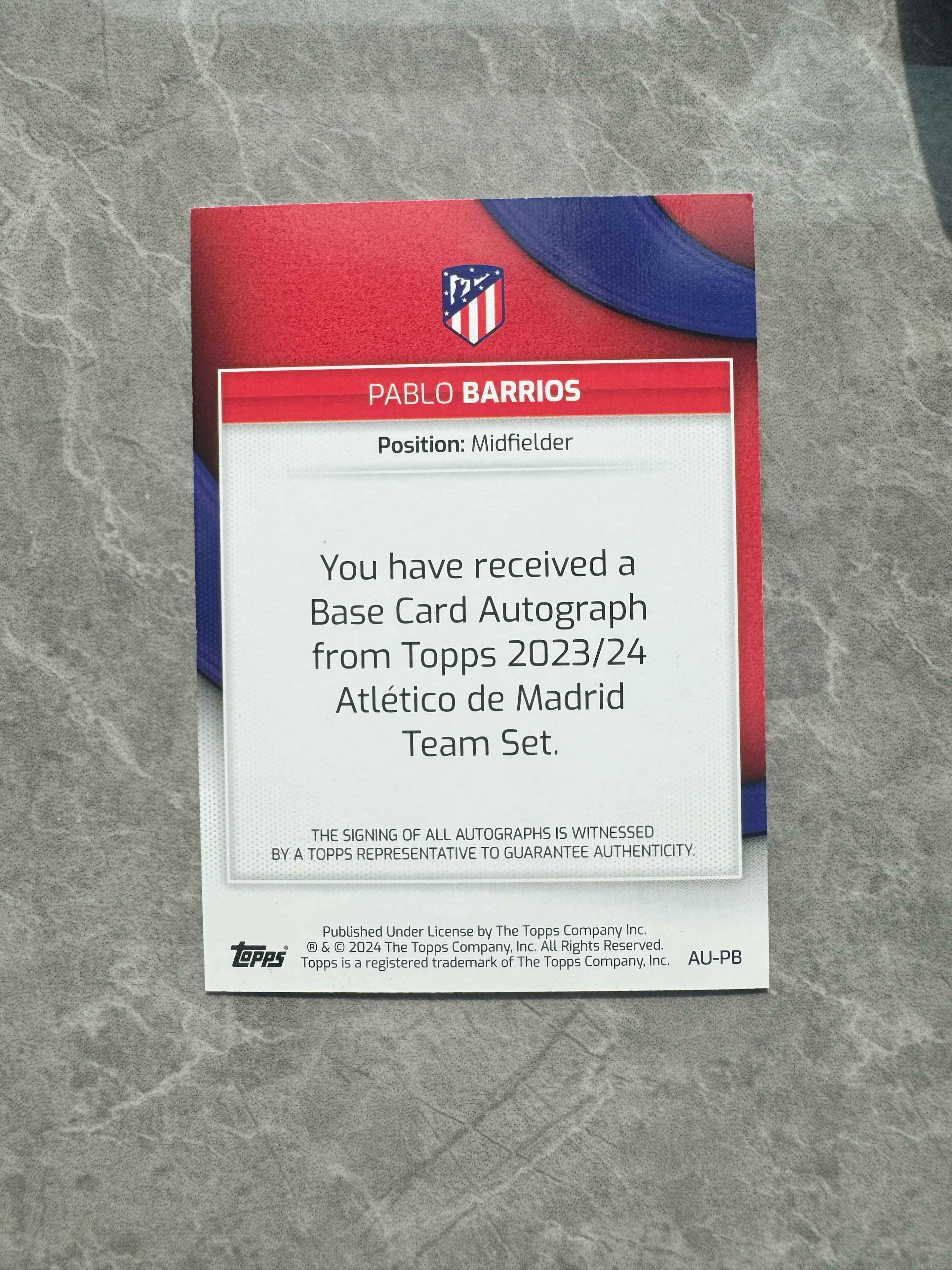 2023-24 Topps Team Set Pablo Barrios 西甲 马竞 巴勃洛 巴里奥斯 签字 墨迹清晰 完美签 马德里竞技 队盒