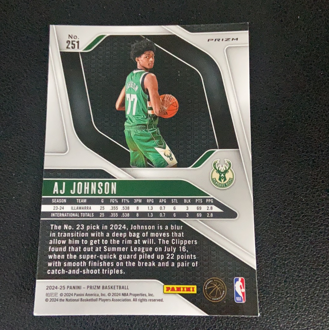 2024-25 Panini Prizm AJ Johnson RC 【9527拍卖】Pz AJ 约翰逊 新秀 粉碎冰 Pink Ice 雄鹿 潜力新星